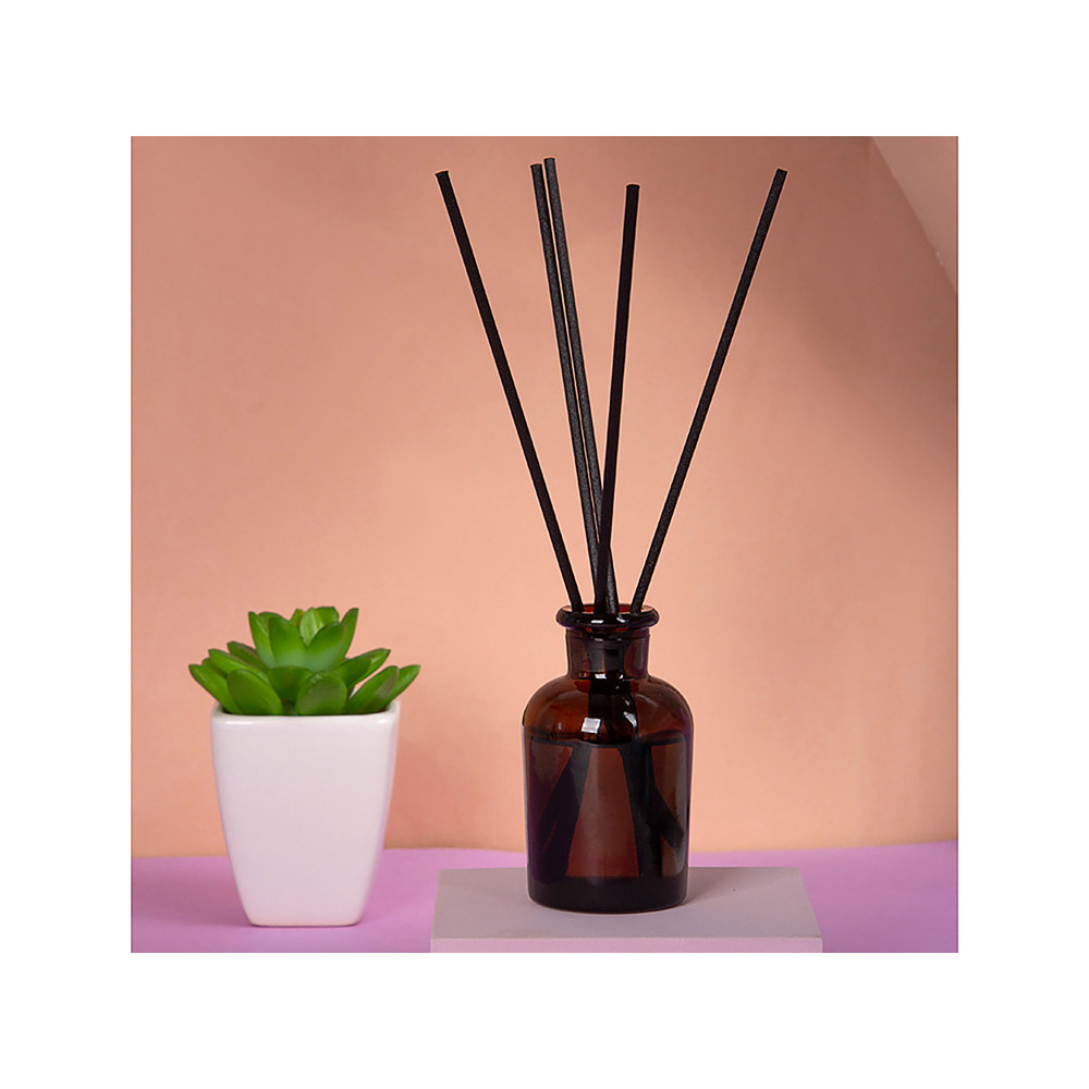 - Комплектность коробка, стеклянная бутылочка с аромажидкостью, фибровые палочки - 5 шт