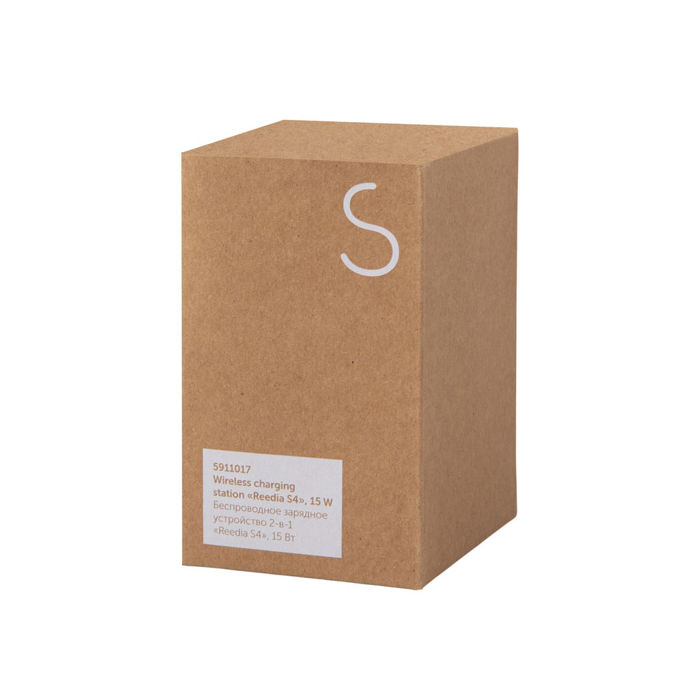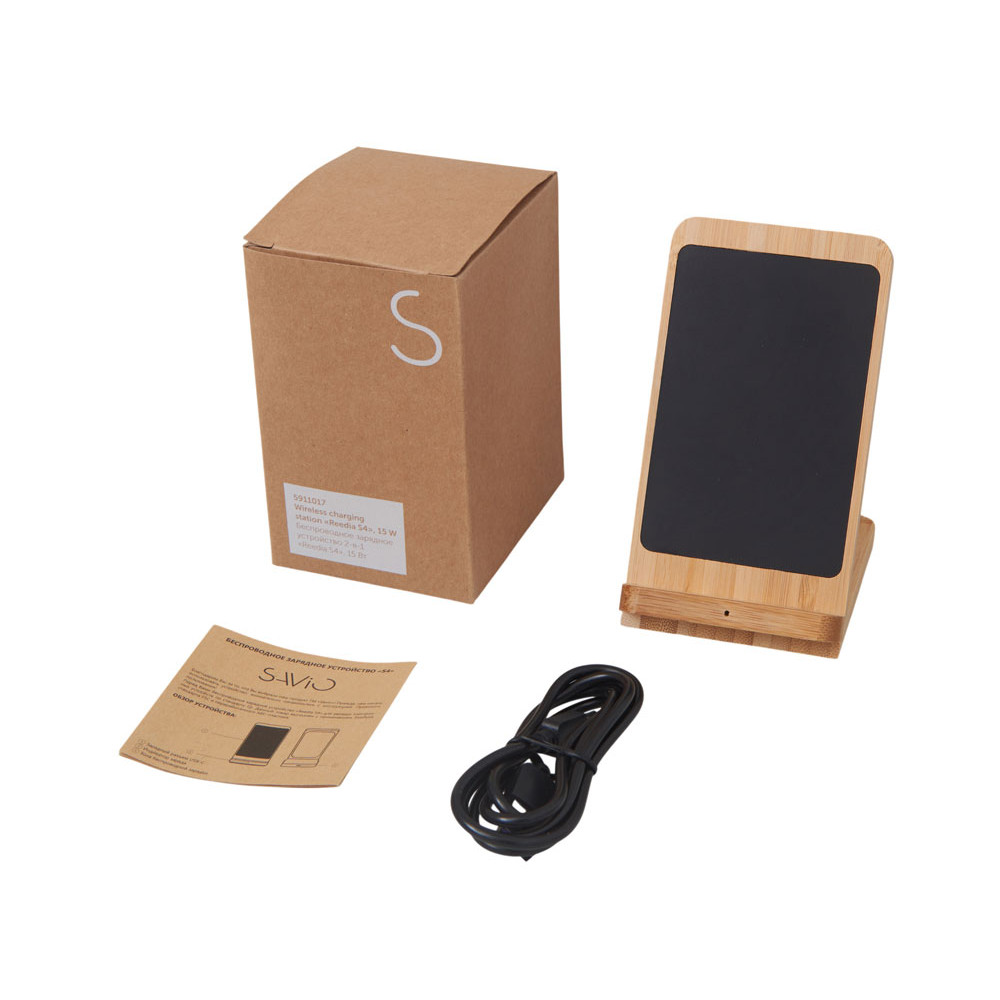 Беспроводное зарядное устройство 2-в-1 с подсветкой лого Reedia S4, 15 Вт, бамбук, черный