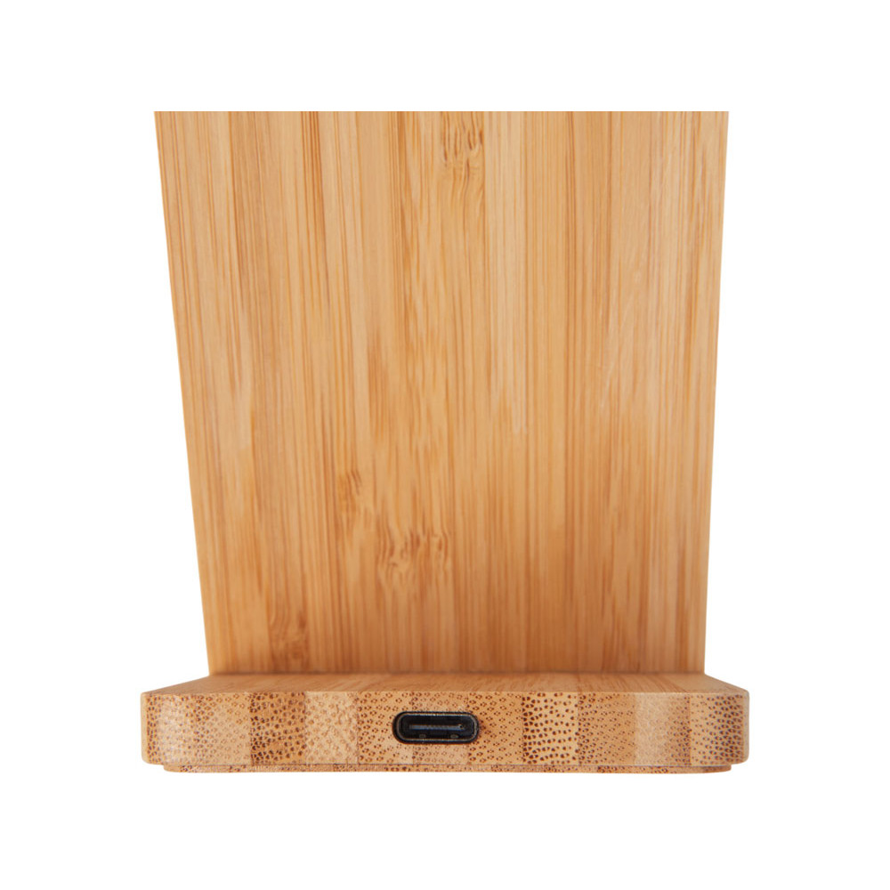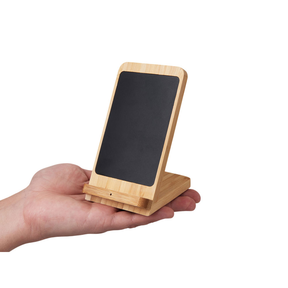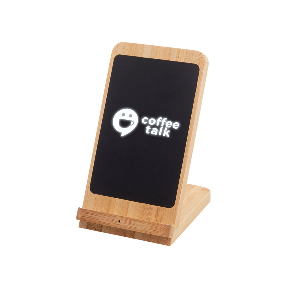 Знакомьтесь с инновационным беспроводным зарядным устройством на 15 Вт — созданным для комфорта, стиля и экологичного образа жизни. Его корпус сочетает натуральный бамбук и переработанный ABS-пластик, даря не только приятную на ощупь текстуру, но и выражая вашу заботу об окружающей среде. Уникальная конструкция с двумя центрами зарядки позволяет заряжать смартфон как в вертикальном, так и в горизонтальном положении — идеально для просмотра видео, видеозвонков или навигации во время зарядки. А встроенная белая подсветка с возможностью нанесения логотипа превращает зарядку в персонализированный аксессуар: ваш бренд или имя мягко светится, добавляя атмосферу уюта и премиальности.