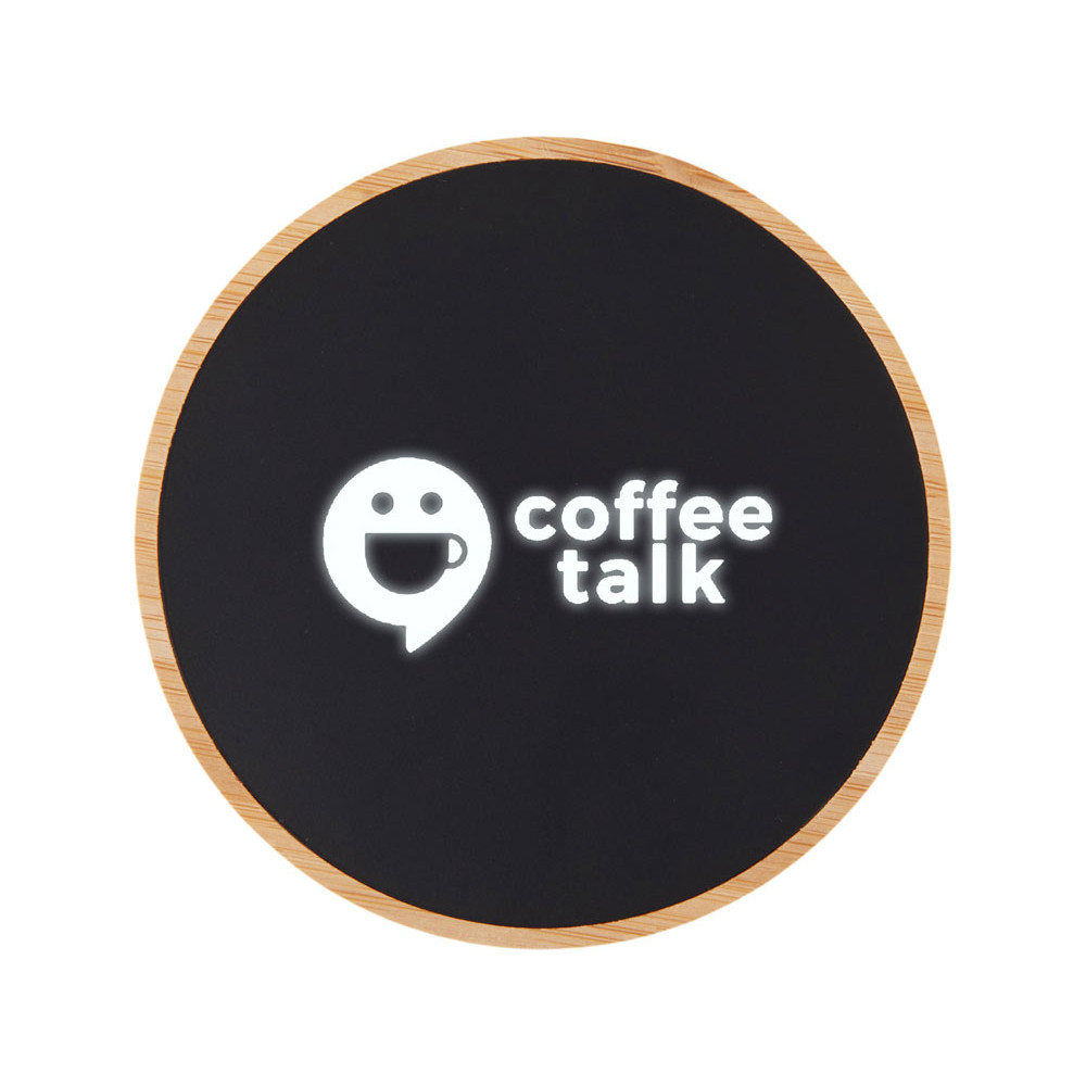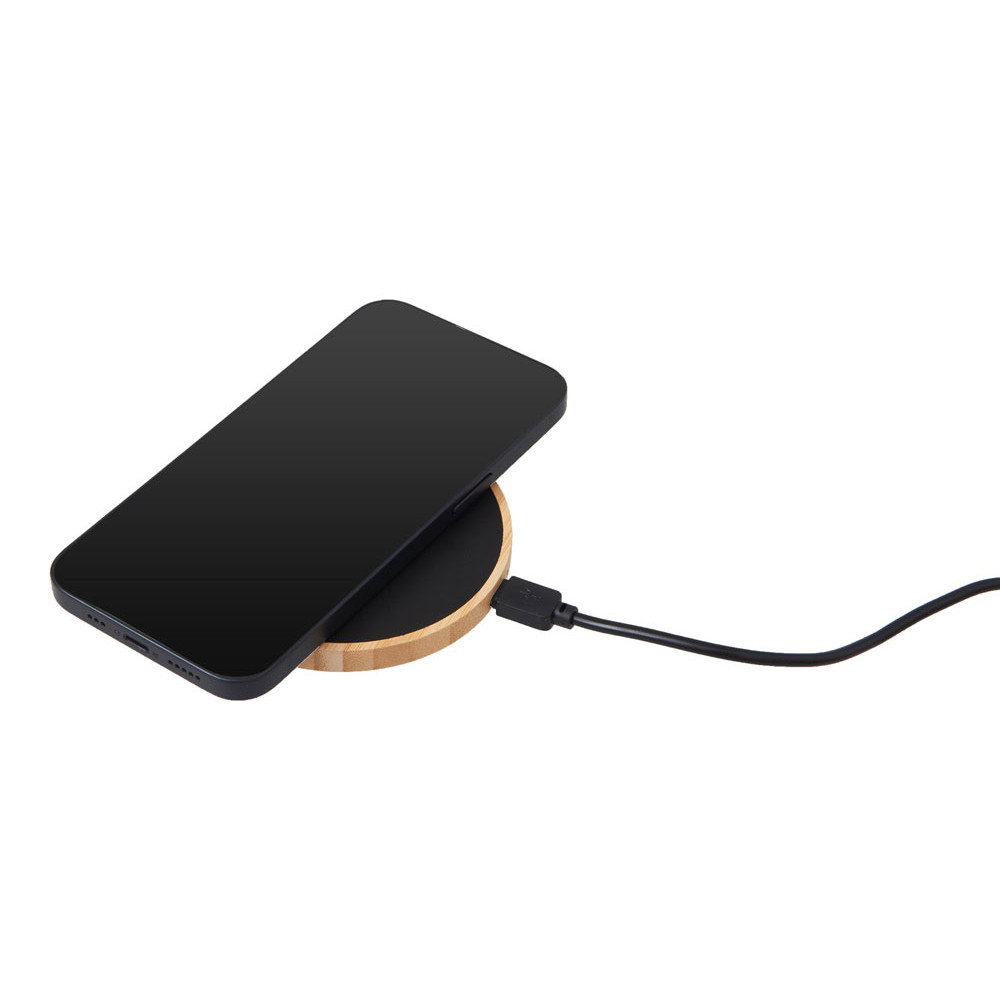 Заряжайте устройства с элегантностью и заботой о планете — с беспроводным зарядным устройством на 15 Вт, выполненным из натурального бамбука и переработанного ABS-пластика. Это не просто функциональный гаджет, а стильный элемент интерьера, который органично впишется в ваш дом, офис или коворкинг. Благодаря поддержке быстрой беспроводной зарядки до 15 Вт, ваш смартфон восполняет энергию без лишних проводов и суеты. А встроенная белая подсветка логотипа добавляет изюминку: ваш бренд или инициалы мягко светятся при зарядке, создавая атмосферу уюта и индивидуальности. Идеальный выбор для тех, кто ценит экологичность, технологии и эстетику.