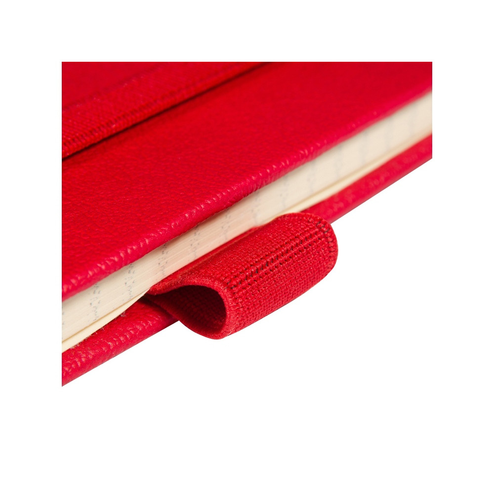 Твердая обложка с углами закругленной формы, фиксирующая резинка и ляссе в цвет обложки, петля для ручки и картонный карман для бумаги на внутренней стороне обложки наделяют блокнот практичностью.