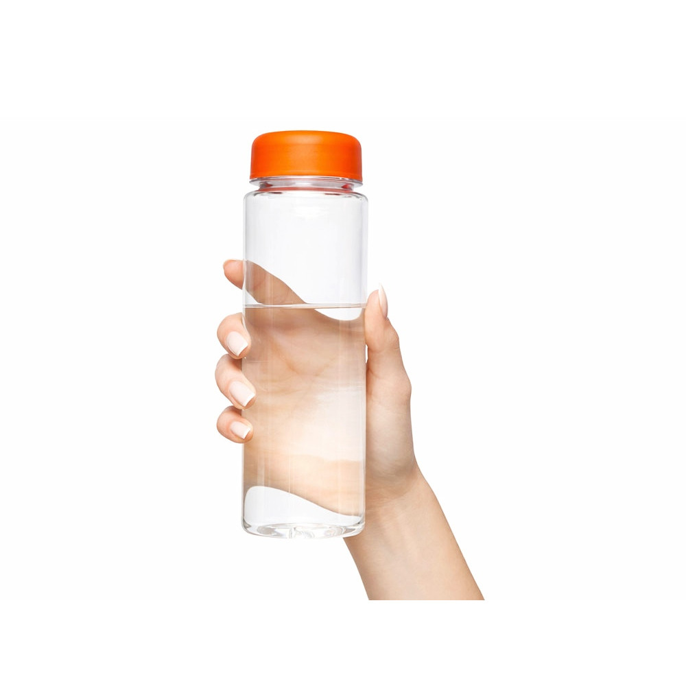 Лаконичный внешний вид позволяет нанести на аксессуар логотип компании. Прозрачный корпус дает возможность контролировать количество содержимого. Благодаря съемному фильтру в воду можно добавлять лимон, мяту и фрукты. Силиконовое кольцо предотвращает протекание, а крышка надежно закрывает бутылку.
