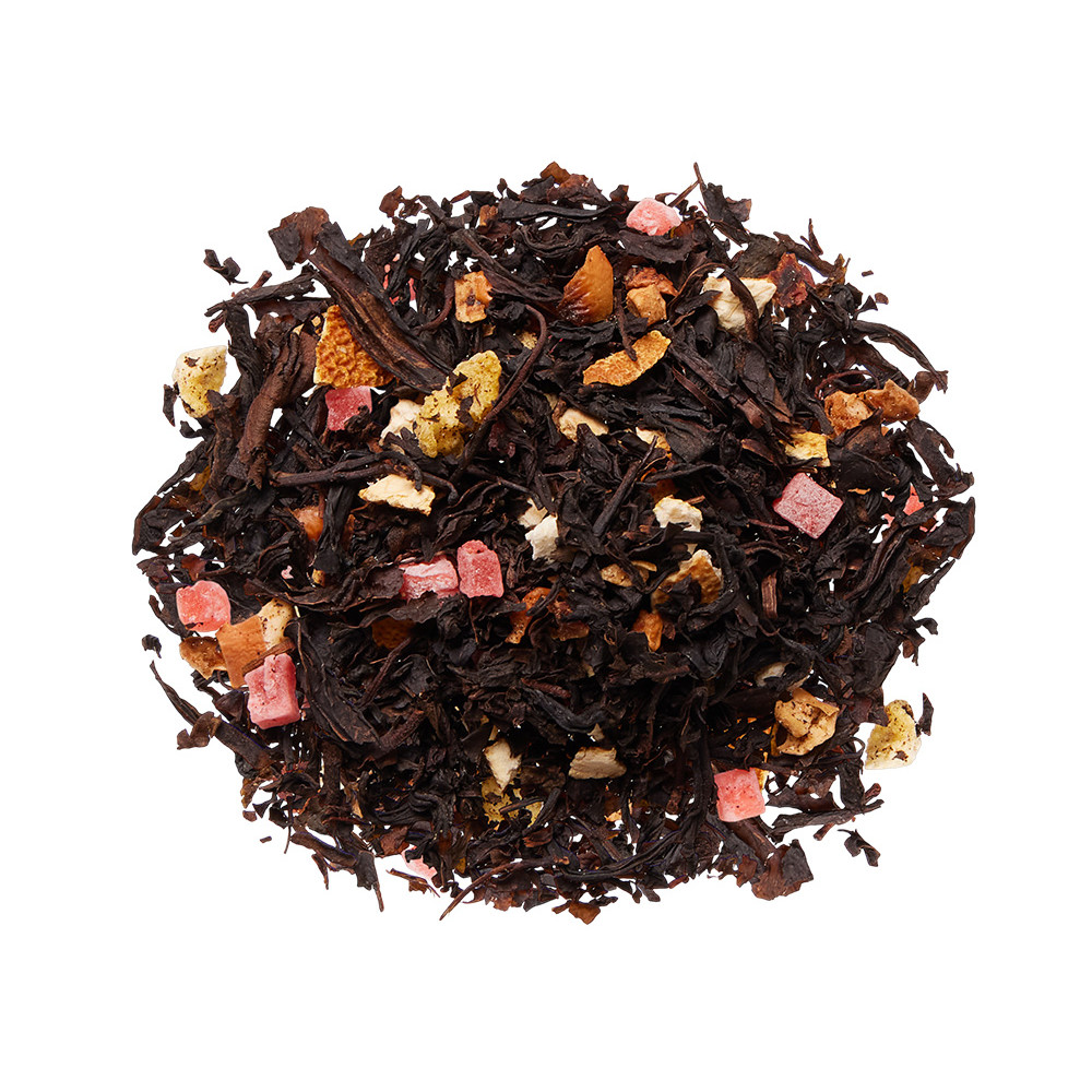 Цедра апельсина добавляет лёгкую цитрусовую свежесть и делает вкус более выразительным, а сушёные яблоки вносят деликатную фруктовую глубину и естественную мягкость. В основе — благородная терпкость чёрного чая, которая уравновешивает фруктовые ноты и делает напиток сбалансированным и насыщенным.