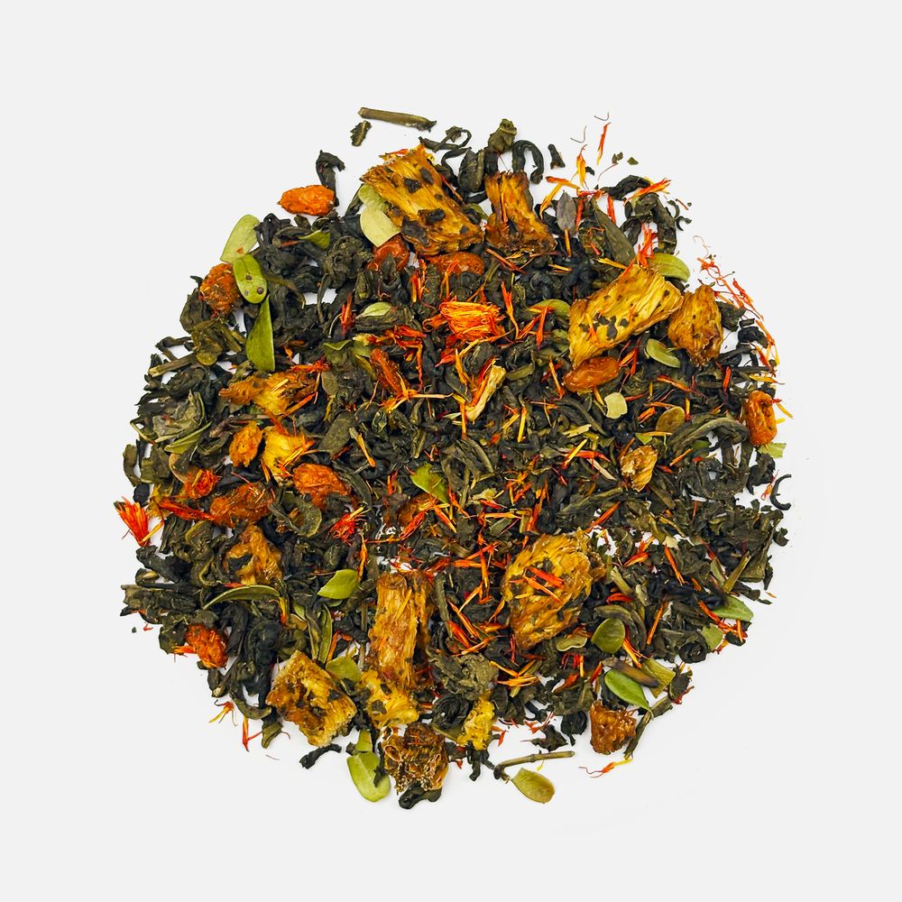 Чай «Сокочай», зеленый с соком ананаса, облепихой, толокнянкой и сафлором