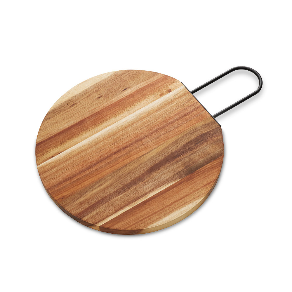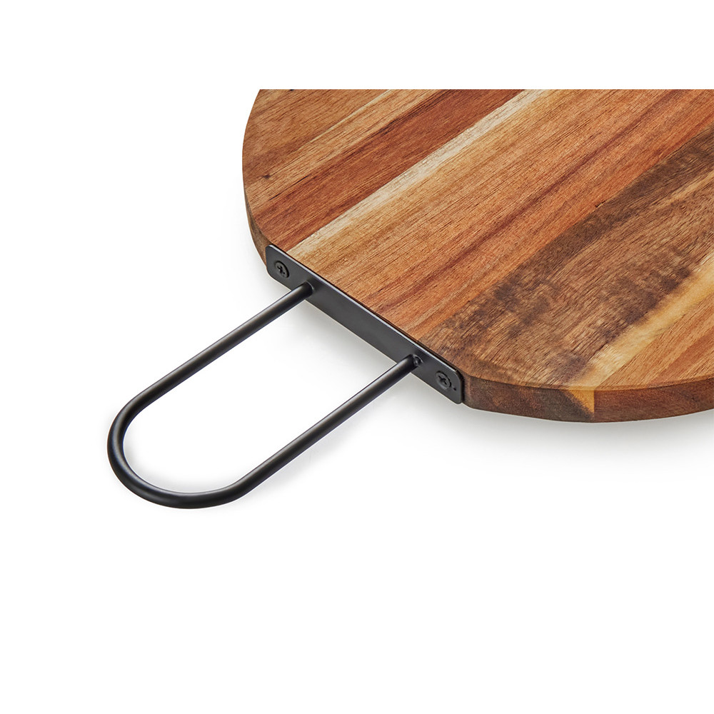 Деревянная круглая доска из акации с металлической ручкой Кира