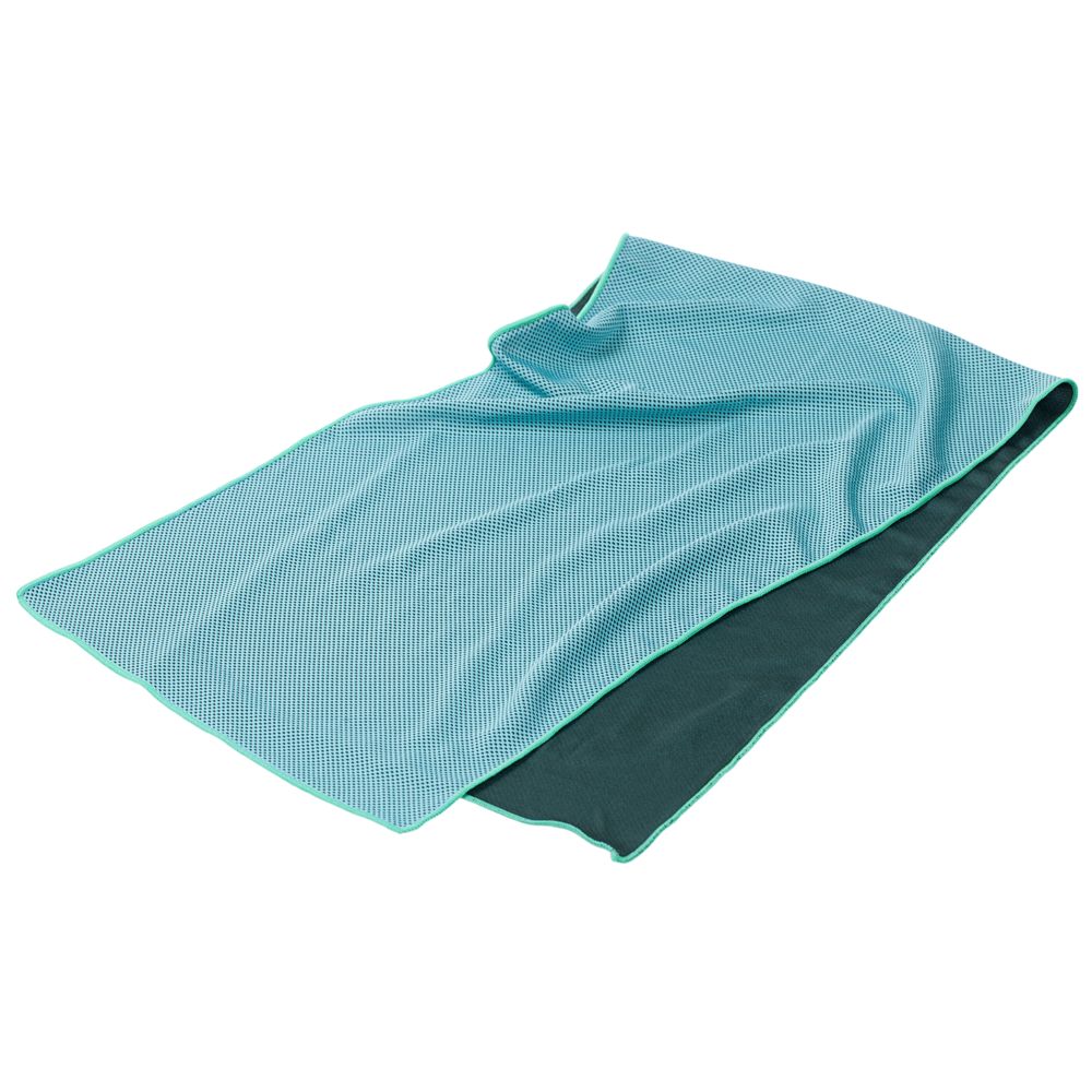 Полотенце поглощает тепло и регулирует температуру благодаря особенной структуре ткани из гидрофобных волокон с технологией трехмерного объемного плетения. Они ускоренно испаряют влагу, обеспечивая тем самым интенсивное снижение температуры.