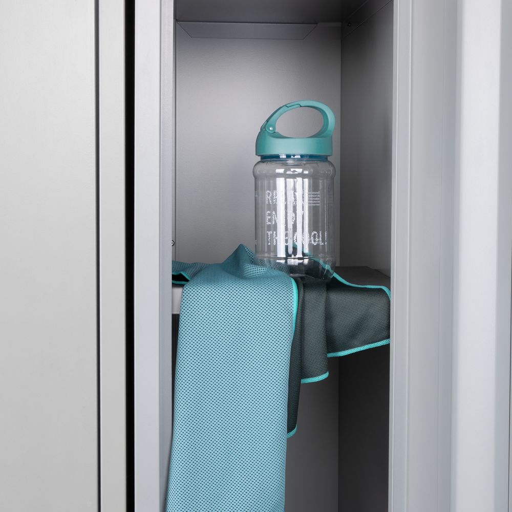 При хранении в бутылке полотенце сохранит охлаждающий эффект в течение нескольких часов. Благодаря крышке-карабину ее удобно прицепить на рюкзак или сумку.