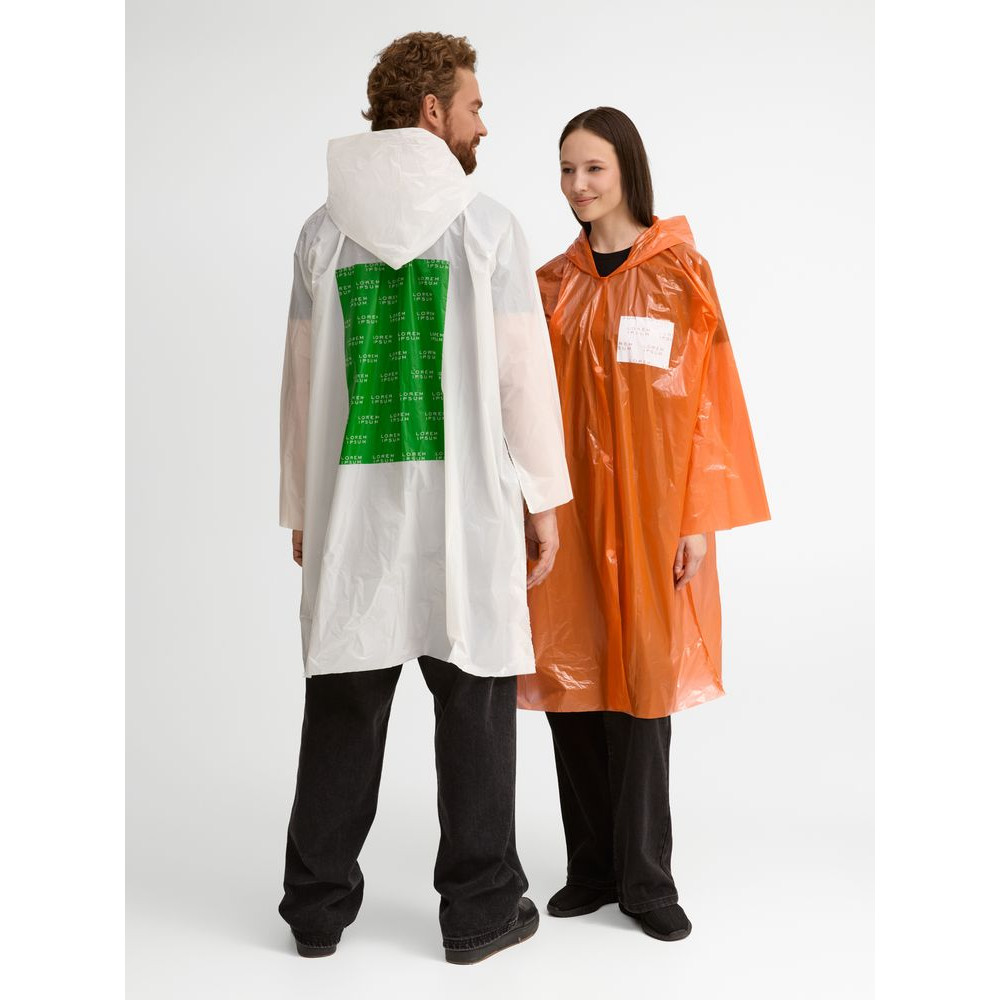 Интересный цвет и печать в один цвет на самом изделии позволят создать не только запоминающийся дизайн, но и отличный маркетинговый инструмент привлечения внимания покупателей.Дождевик-плащ с капюшоном и длинным рукавом из плотного полиэтилена высокого давления (ПВД).