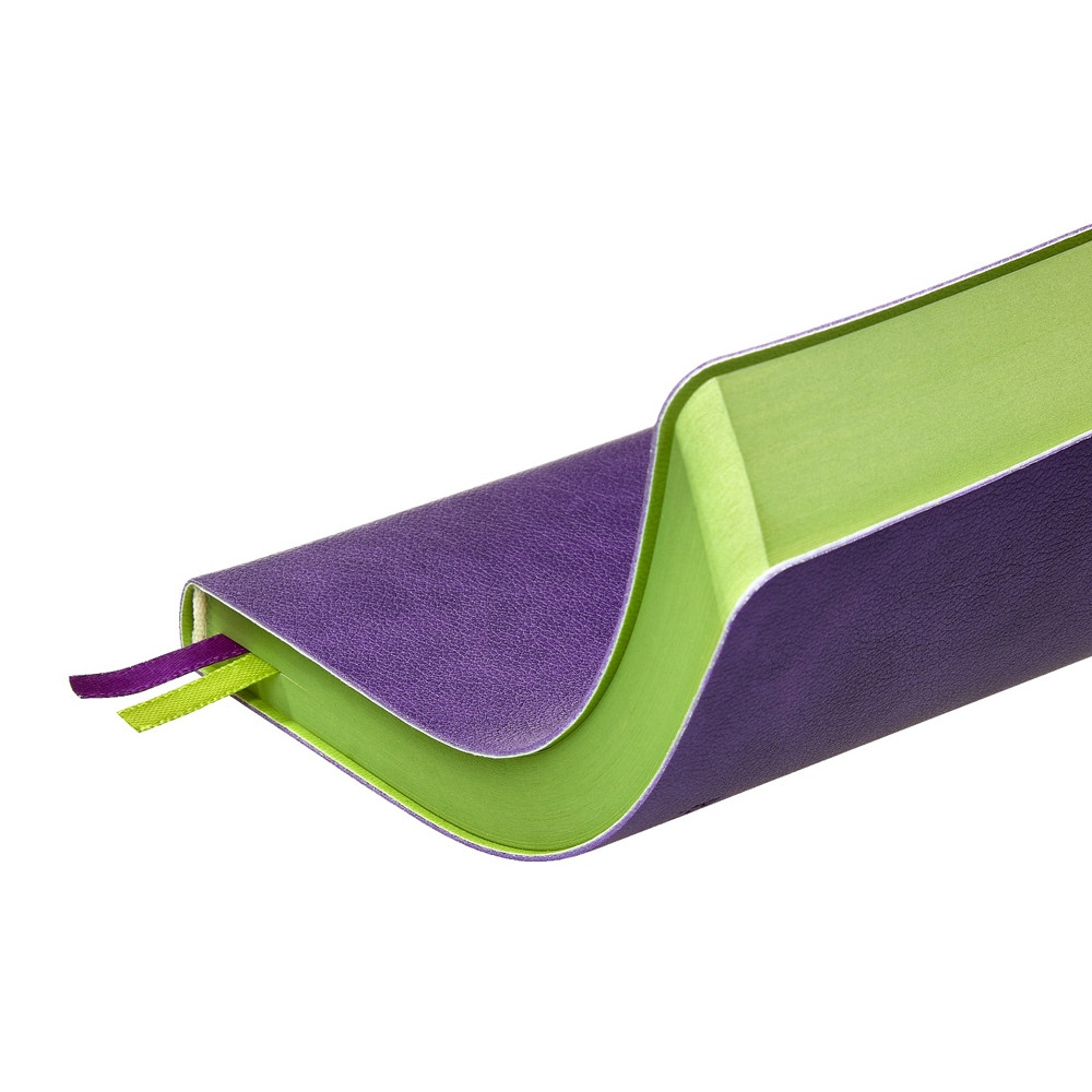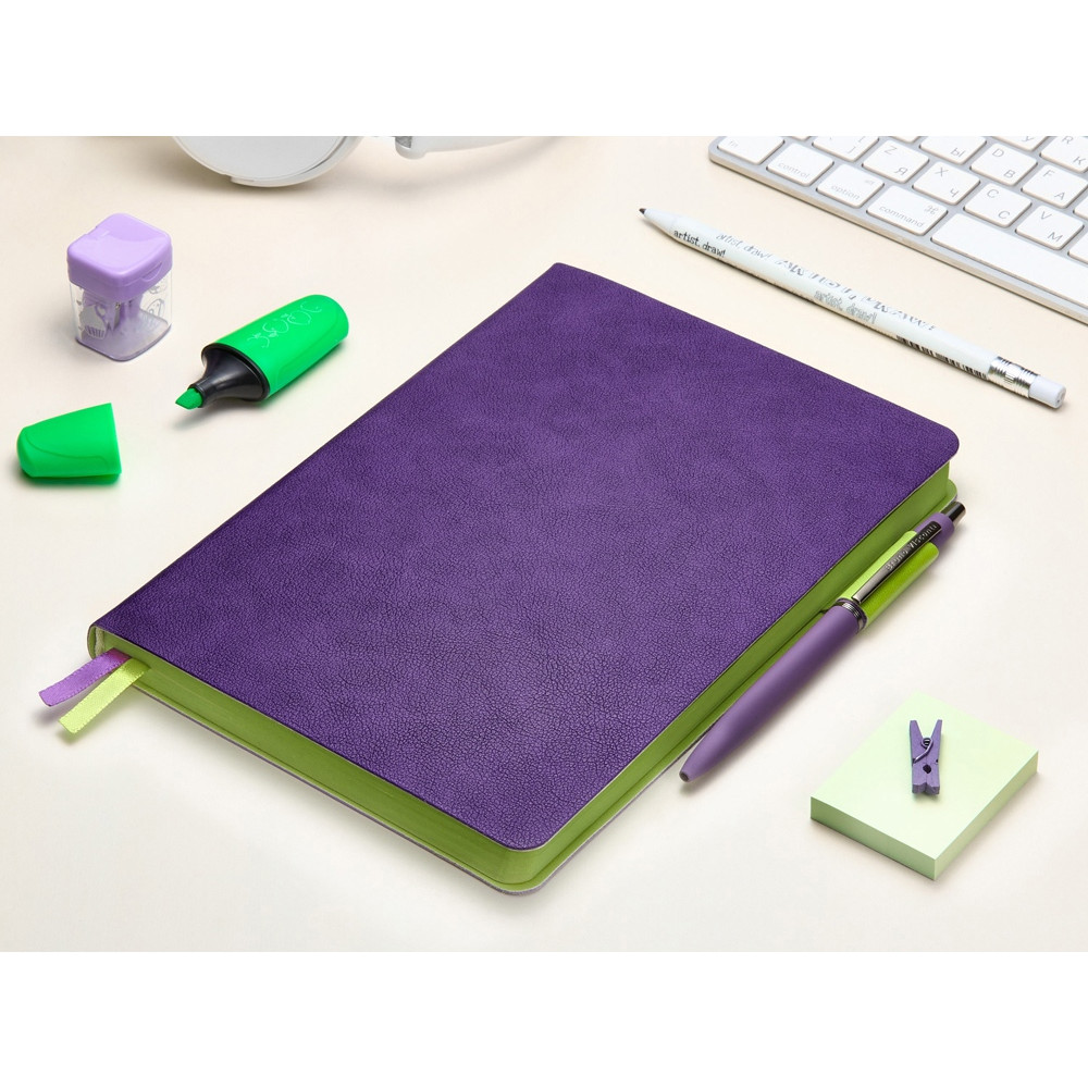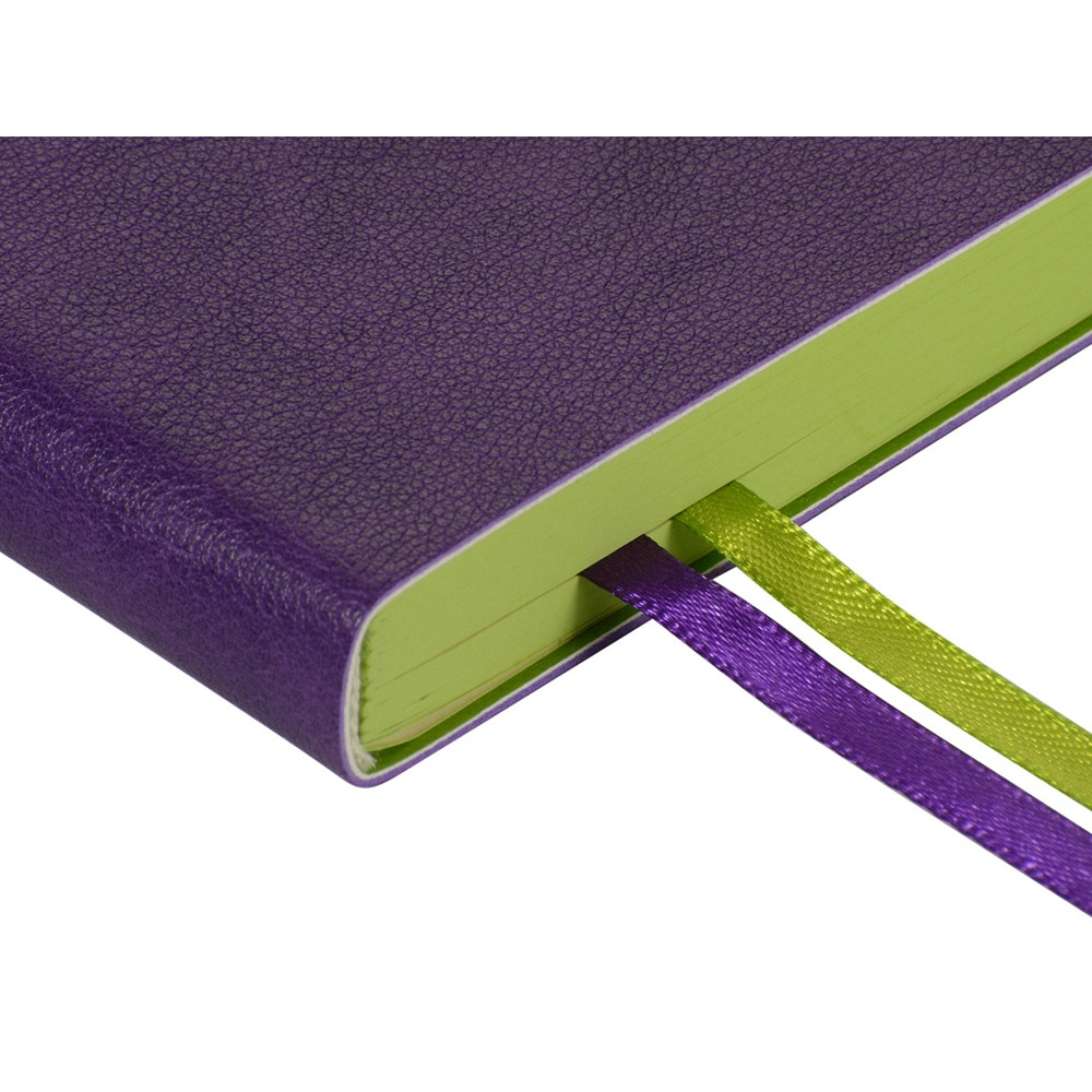 Ежедневник А5 датированный Boston 2026, фиолетовый с салатовым обрезом