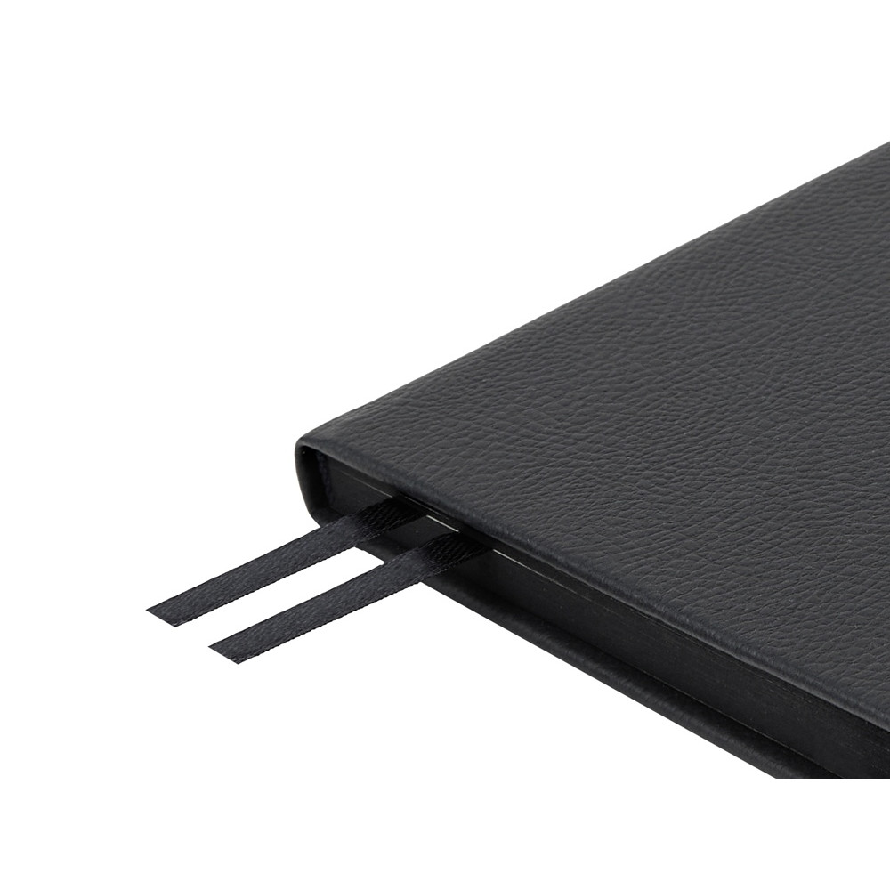 Твердая обложка из фактурной искусственной кожи, двойное ляссе и окрашенный обрез придают ему особый шарм. Блок из бежевой бумаги плотностью 70 г/кв.м содержит раздел для планирования, календарь и справочную информацию.