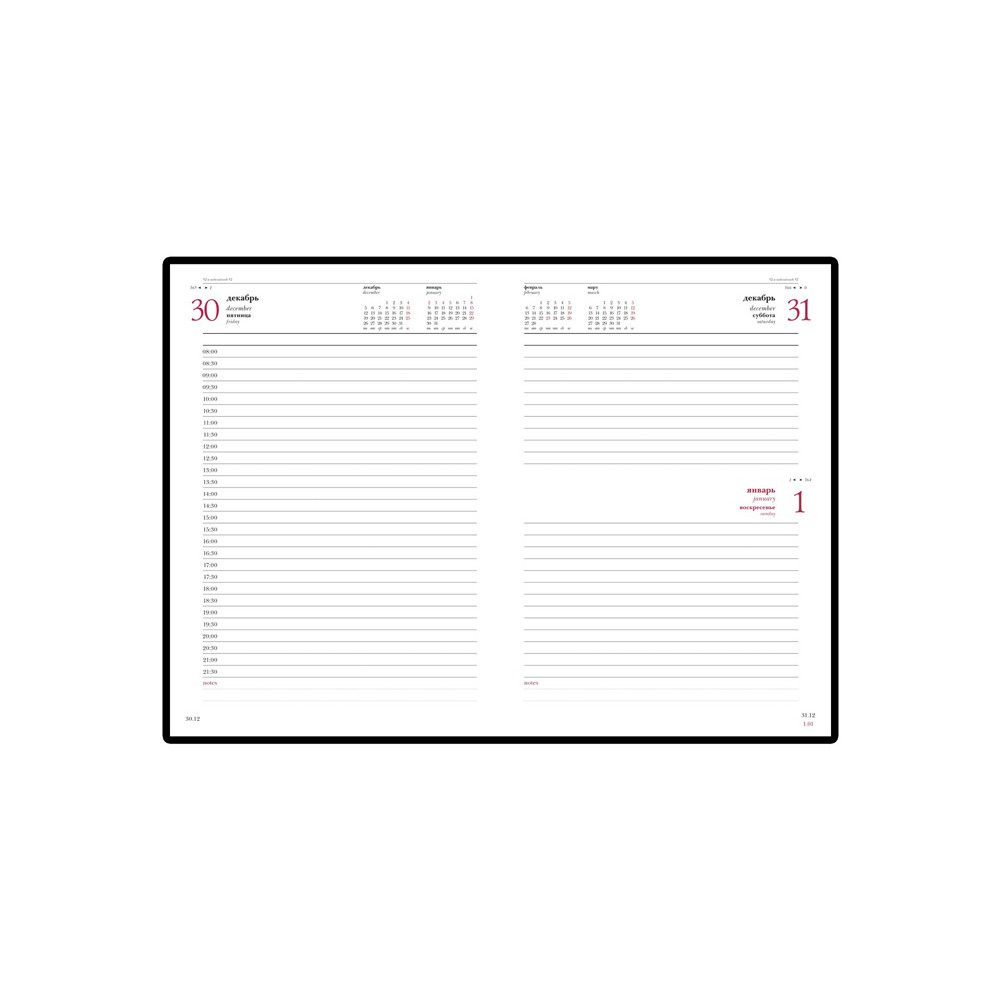 Благородство и статусность придают ежедневнику отстрочка по периметру в тон, скругленные углы, закладка-ляссе бордового цвета, золотой срез.