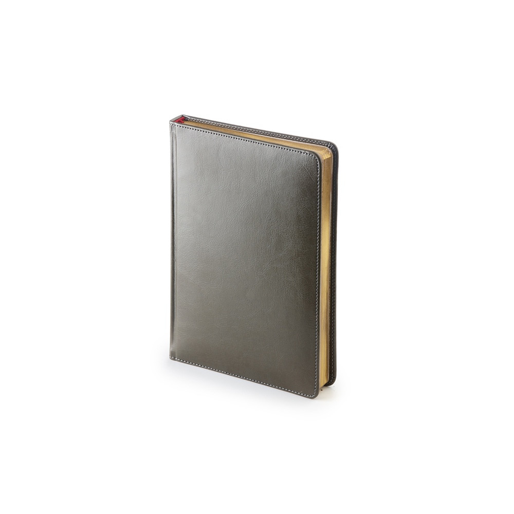 Благородство и статусность придают ежедневнику отстрочка по периметру в тон, скругленные углы, закладка-ляссе бордового цвета, золотой срез.