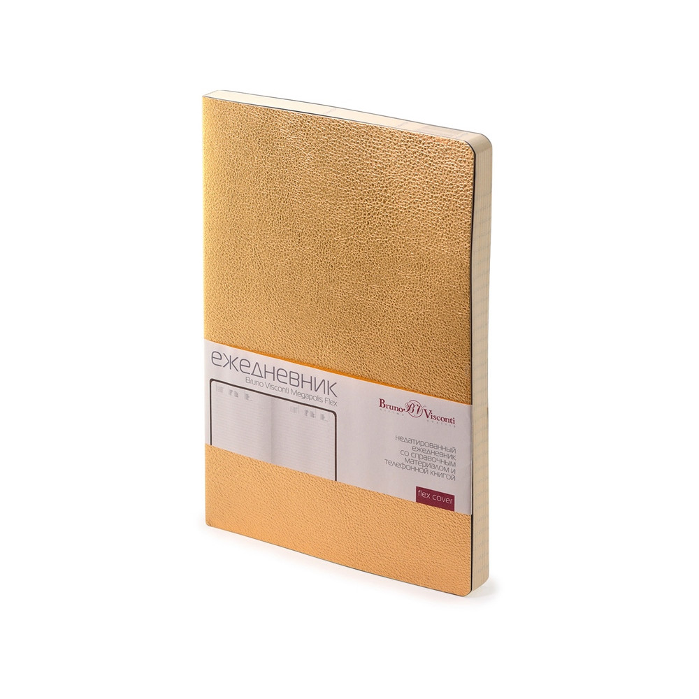 Недатированный ежедневник Megapolis Flex от бренда Bruno Visconti - это качественный корпоративный подарок по выгодной цене, произведенный специально под персонализацию. Представлен в универсальном формате А5 и состоит из 272 страниц. Элегантная закругленная flex обложка из гладкого кожзама имеет гибкую конструкцию и приятна на ощупь. А интегральный переплет позволяет сэкономить место в деловой сумке или портфеле – ежедневник можно просто свернуть в трубку или согнуть пополам.