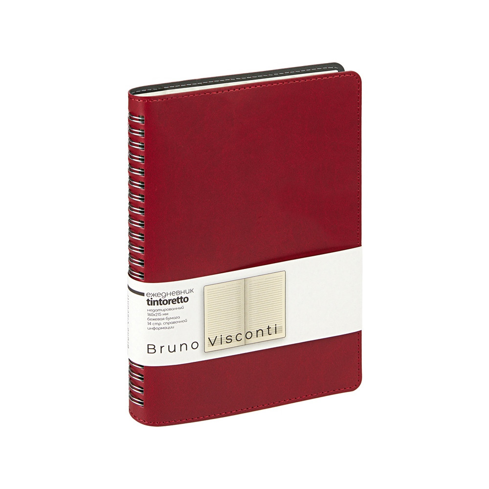 Недатированный ежедневник формата А5 Tintoretto ТМ Bruno Visconti - практичное решение для тех, кто любит ежедневники на пружине. Полускрытый гребень позволяет держать ежедневник открытым на столе и комфортно вести записи. 272 страницы блока произведены из превосходной бежевой бумаги плотностью 70 г/кв.м, а неброская линовка каждой страницы позволяет не отвлекаться на лишние детали. Гибкую обложку из искусственной кожи украшает отстрочка декоративной нитью по краю.
