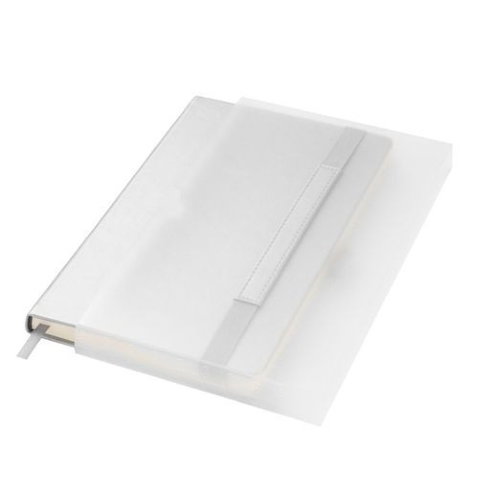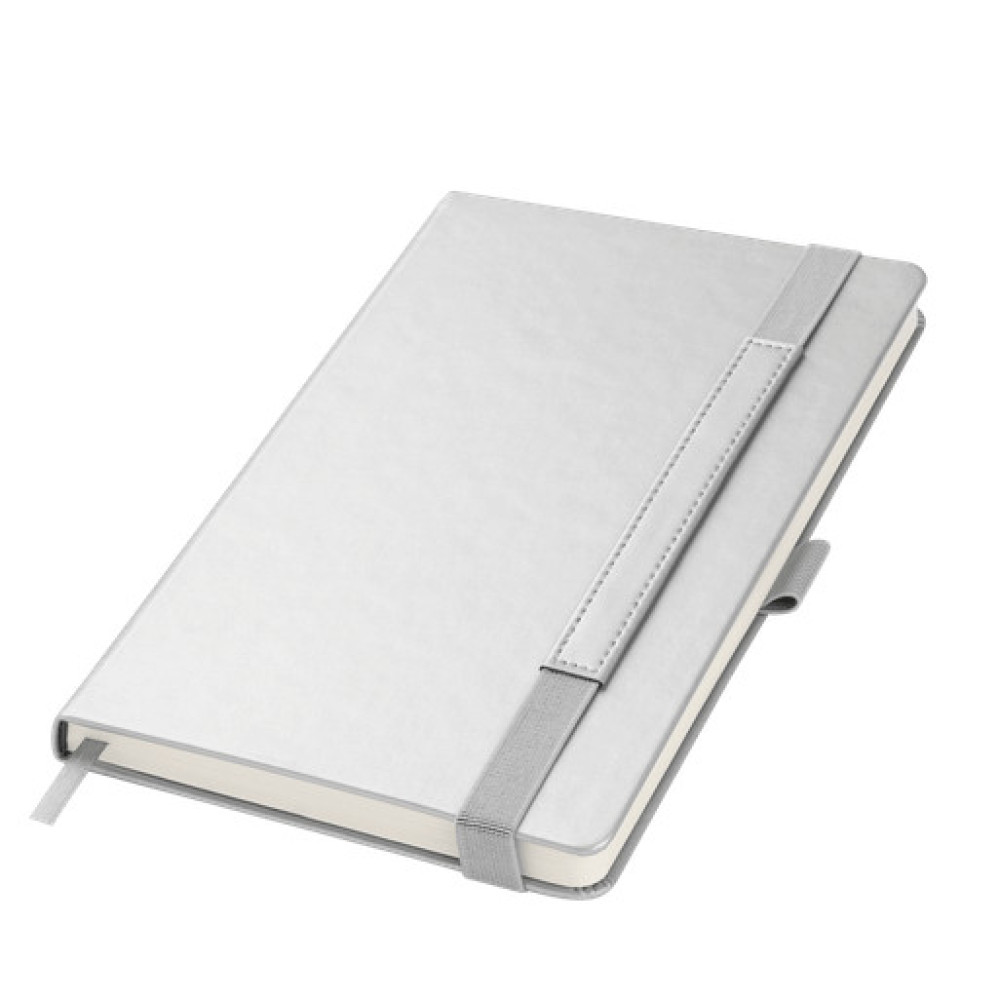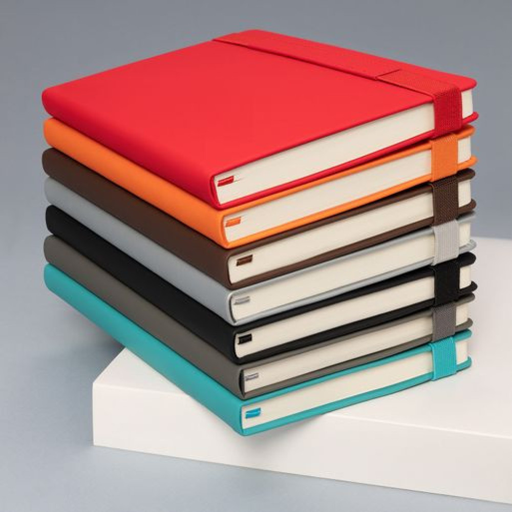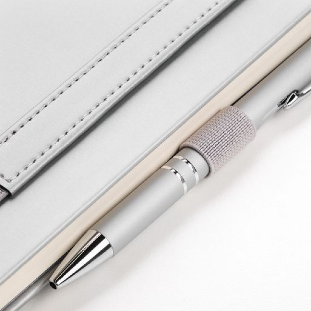 Вертикальная резинка-фиксатор с вставкой из ПУ-материала обложки и петелька под ручку, в цвет обложки