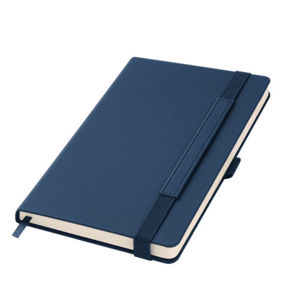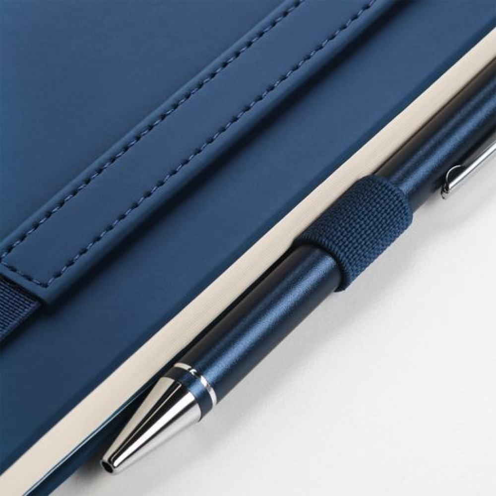 Вертикальная резинка-фиксатор с вставкой из ПУ-материала обложки и петелька под ручку, в цвет обложки