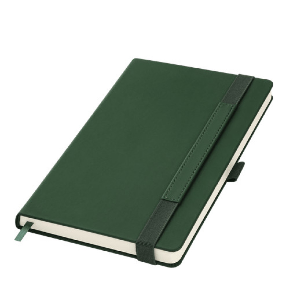 Вертикальная резинка-фиксатор с вставкой из ПУ-материала обложки и петелька под ручку, в цвет обложки