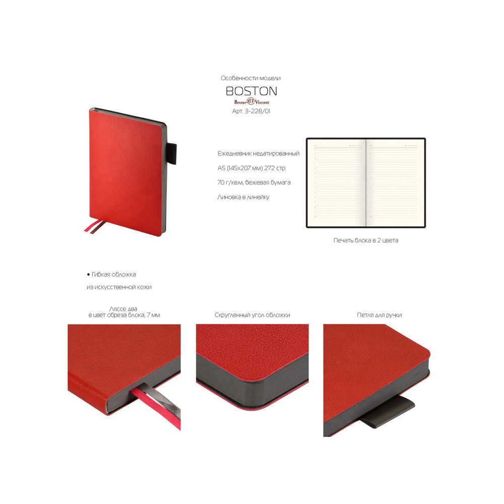 Ах, это элегантное двойное ляссе! Одна небольшая деталь так выгодно выделяет ежедневник Boston на фоне остальных. Шероховатый материал обложки придает благородства, а цветной обрез сдержанности и дерзости одновременно. Цвета двойного ляссе великолепно сочетаются с темно-синим цветом недатированного ежедневника Boston от Bruno Visconti. Красивая бежевая бумага плотностью 70 г/м, скругленный угол обложки и блока, крашеный обрез, 21 страница справочной информации. Ежедневник Boston заслуживает вашего внимания. Упакован в картонный полукороб и термопленку.