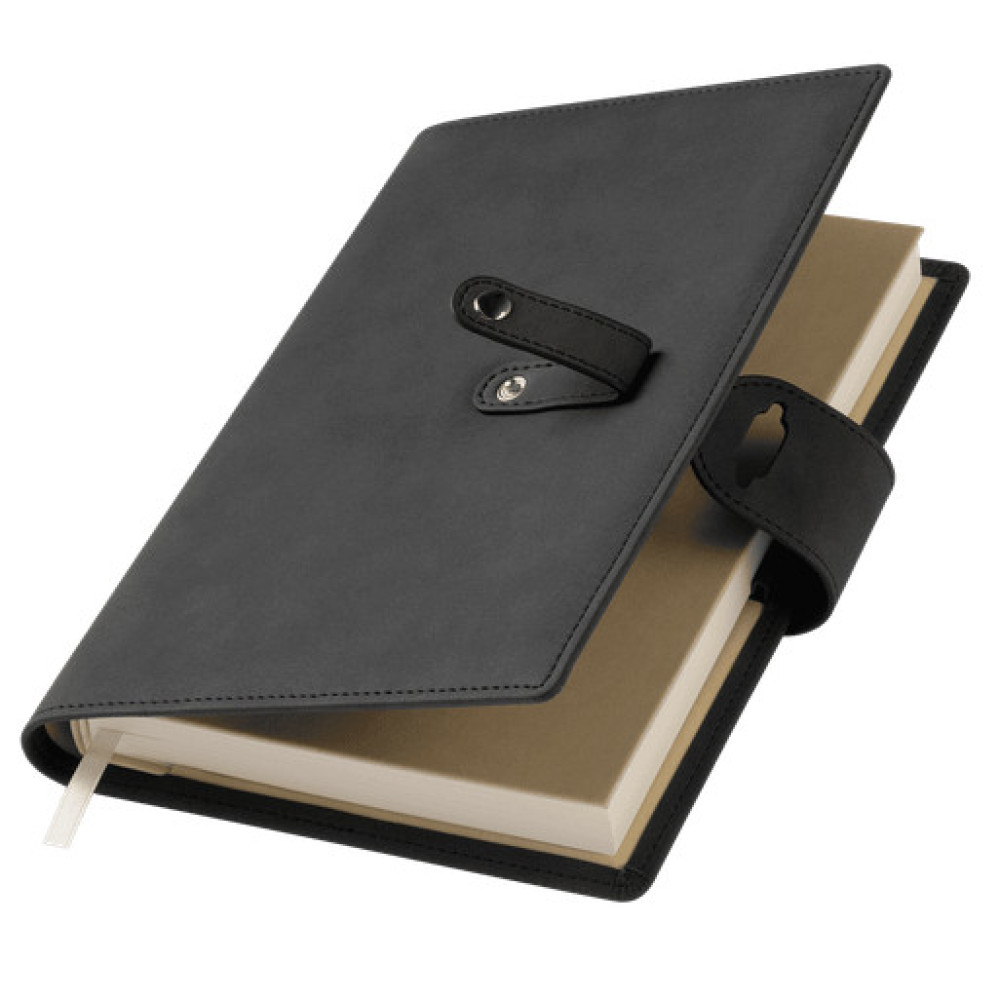 Застежка двойная – состоит из ремешка с металлической кнопкой и декоративной петли из материала обложки