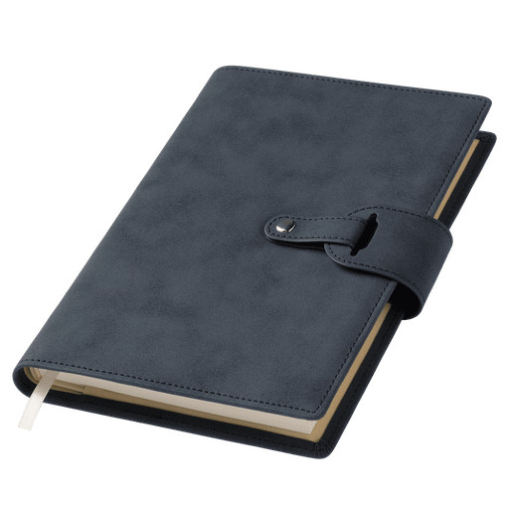 Застежка двойная – состоит из ремешка с металлической кнопкой и декоративной петли из материала обложки