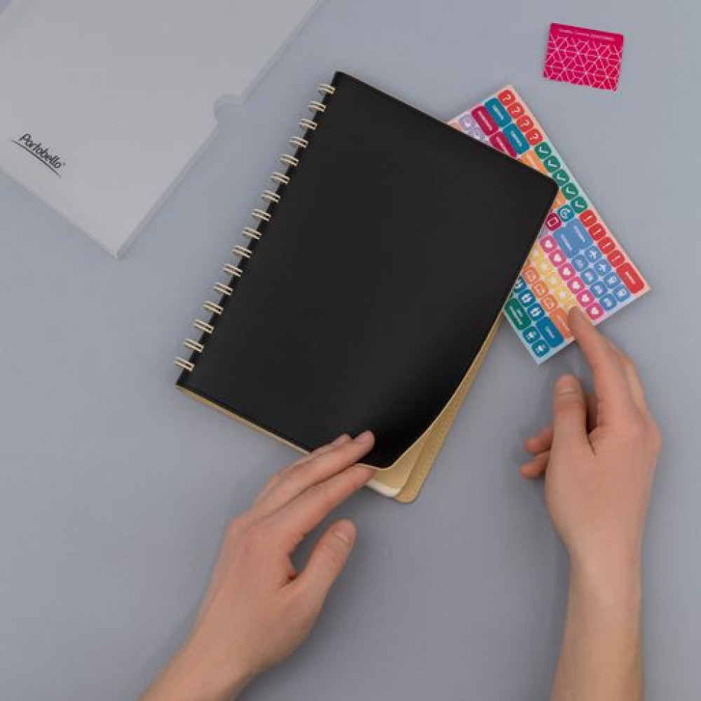Полускрытая пружина в тон внутреннего материала обложки