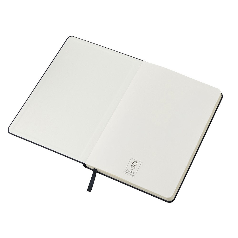 В блокноте 192 страницы кремовой бумаги 70 г/м2 с сертификатом ответственного лесопользования FSC.