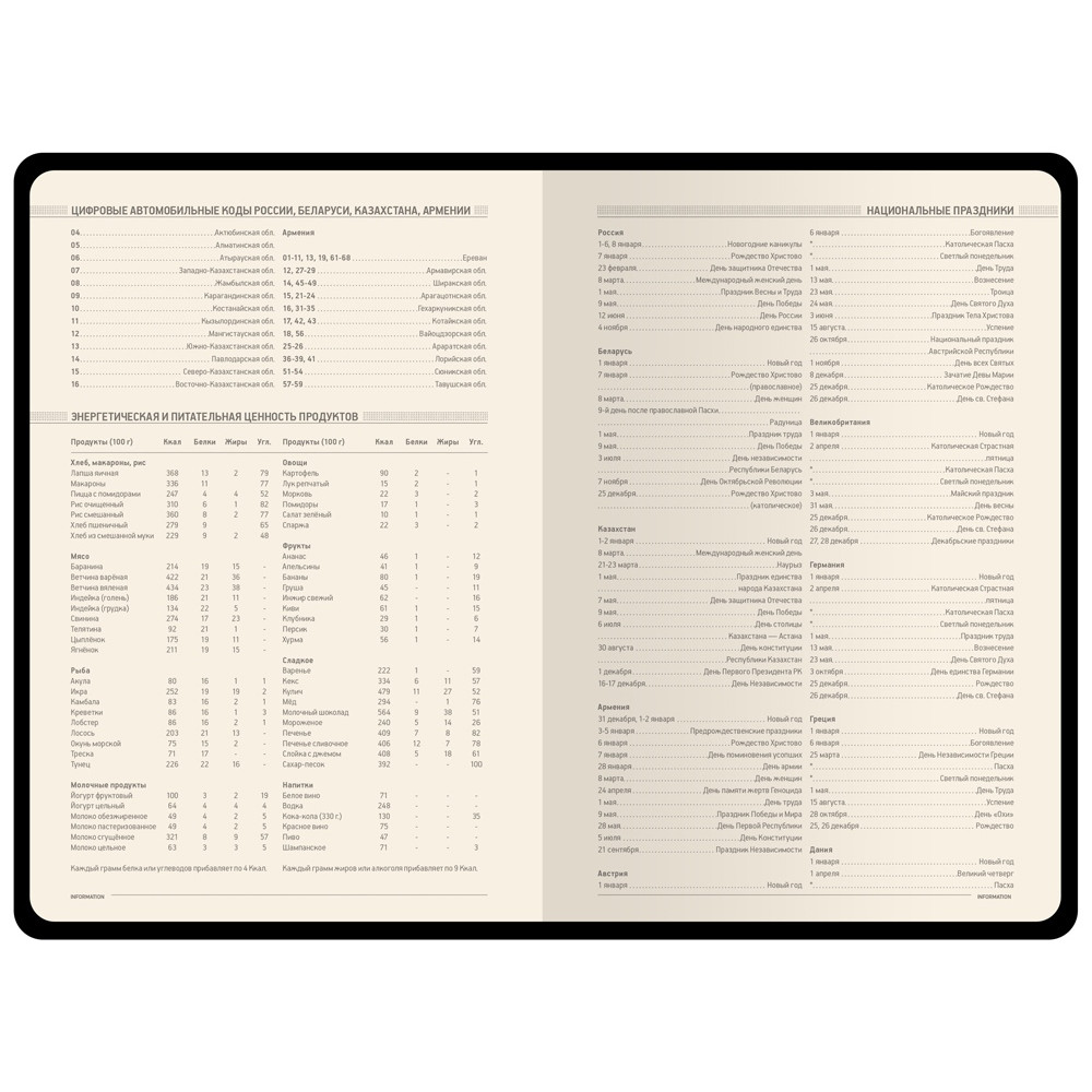 В ежедневнике Megapolis Flex есть полезная справочная информация и телефонная книга, а также страницы для записи идей, мыслей и составления рабочих планов. Для изготовления страниц используется качественный бежевый офсет повышенной плотности (70 г/кв м). Блок не привязан к конкретным датам – они указываются в выделенном поле вверху страницы. Тонированная бумага не дает глазам утомиться даже при длительной работе.