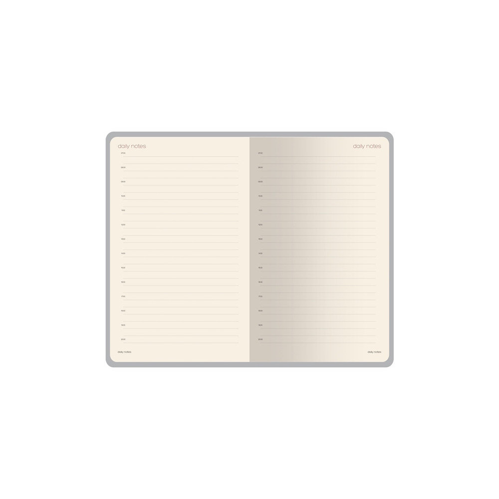 Недатированный ежедневник MODENA формата А5 от Bruno Visconti идеален для тех, кто ценит в бизнес-аксессуарах эстетику, простоту, функциональность. Визитная карточка ежедневника: - гибкая обложка с приятным бархатистым покрытием; - горизонтальная тонкая резинка надежно фиксирует блок, если ежедневник не в работе; - скругленный угол блока и обложки; - раздел для планирования имеет линовку серого цвета с указанием времени (интервалы в один час) и выполнен из бежевой бумаги плотностью 70 г/кв.м; - дополнительно внутренний блок содержит справочную информацию на 25 страницах.