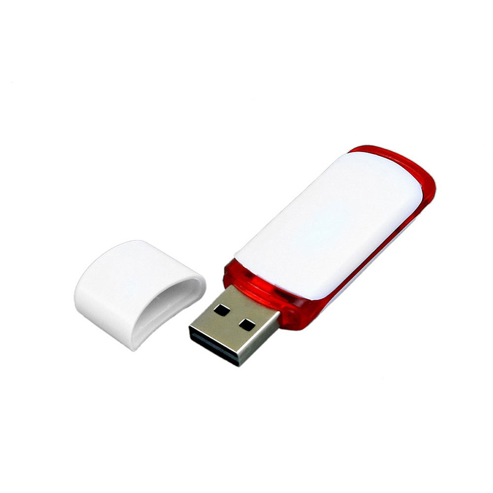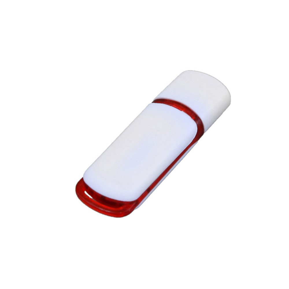 Флешка промо прямоугольной классической формы с цветными вставками, 64 Гб, белый/красный
