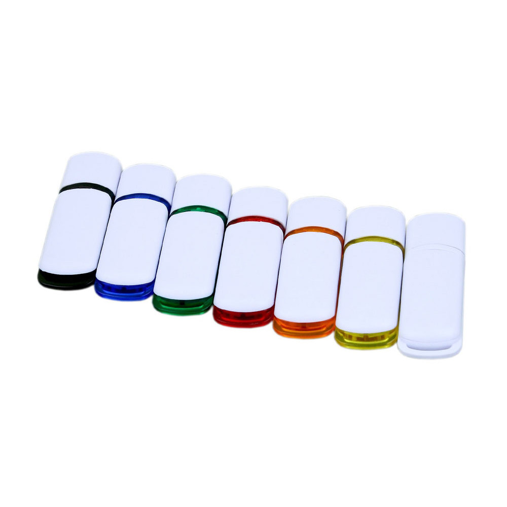 Флеш-накопитель промо прямоугольной классической формы с цветными вставками, объем памяти 64 Гб. Пластиковый корпус.