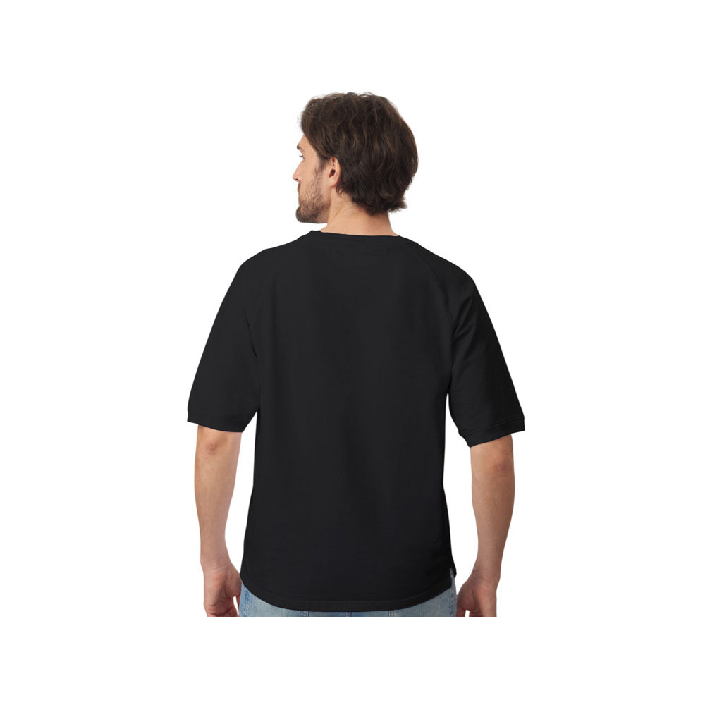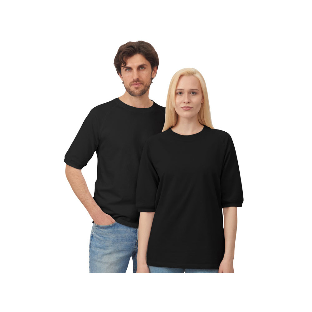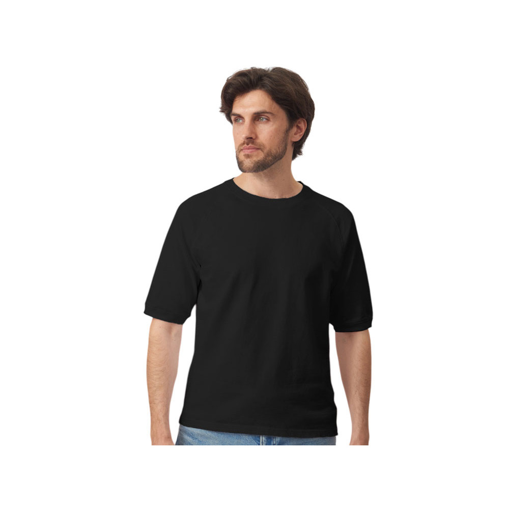 Футболка выполнена из хлопкового френч терри с петельками на изнаночной стороне. Горловина обработана рибом 2х2 и дополнительно усилена тесьмой-елочкой с внутренней стороны спинки и дополнена кокеткой по спинке для нанесения логотипа клиента. Рукав реглан продублирован рибом по низу. Разрезы в боковых швах. Гладкая поверхность полотна позволяет идеально нанести изображение. Футболка комфортного силуэта.