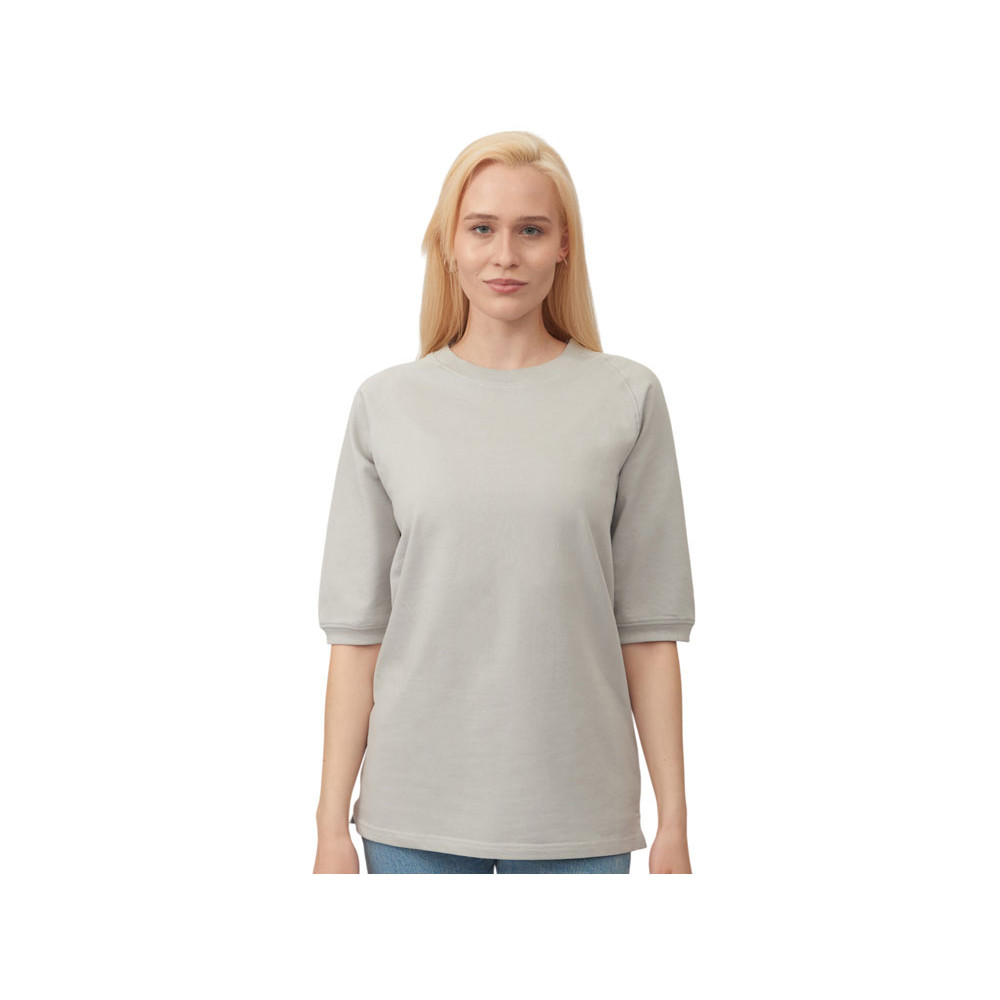 Футболка выполнена из хлопкового френч терри с петельками на изнаночной стороне. Горловина обработана рибом 2х2 и дополнительно усилена тесьмой-елочкой с внутренней стороны спинки и дополнена кокеткой по спинке для нанесения логотипа клиента. Рукав реглан продублирован рибом по низу. Разрезы в боковых швах. Гладкая поверхность полотна позволяет идеально нанести изображение. Футболка комфортного силуэта.