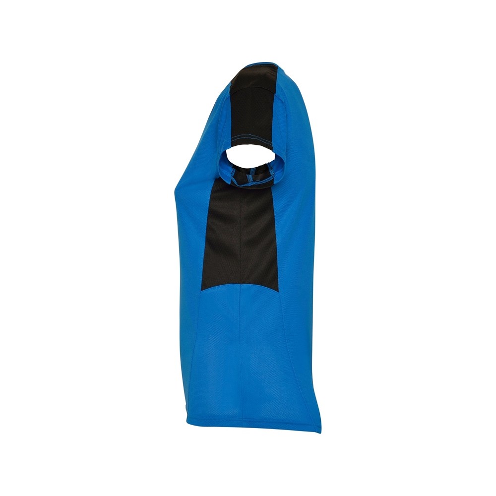 Женская футболка с коротким рукавом. V-образная горловина. Комбинация из 2 полотен контрастного цвета: структурное полотно на полочке и дышащая 3D сетка на плечах и боках.