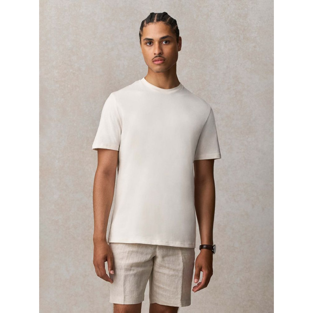 За счет идеальных пропорций гребенного хлопка и переработанного полиэстерав составе, а также благодаря дополнительным обработкам полотно обладает повышенной мягкостью, шелковистостью и очень приятно на ощупь. Кроме того футболка меньше мнется, не теряет форму после стирок и обладает высоким показателем Qmax — коэффициента мгновенной теплопроводности, который показывает, как быстро ткань забирает тепло от кожи. Именно он обеспечивает ощутимый эффект свежести и прохлады при первом прикосновении к ткани.