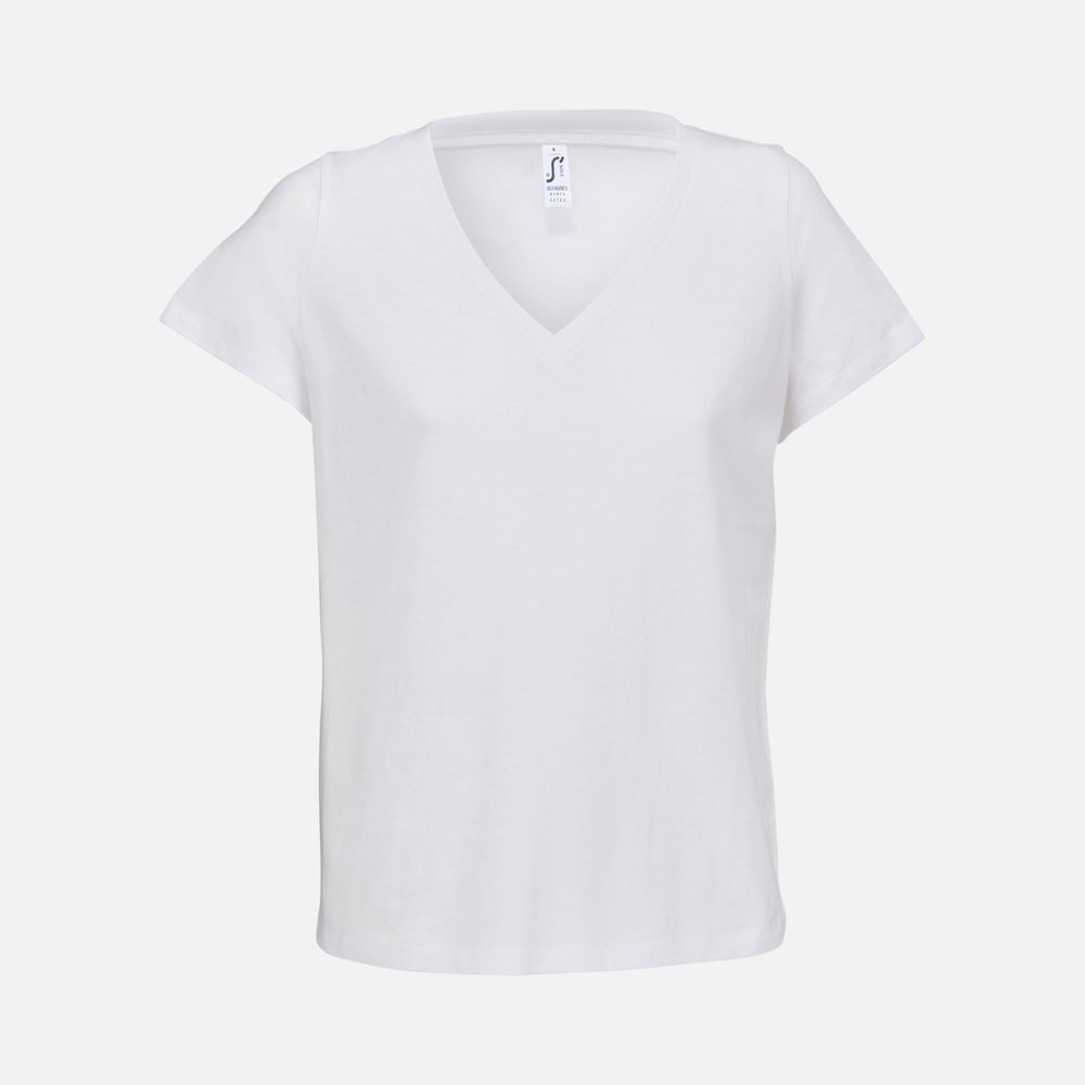 Женская футболка Regent с V-образным вырезом. Такой вырез снова актуален: он визуально удлиняет шею, подчеркивает линию ключиц и добавляет образу легкости.