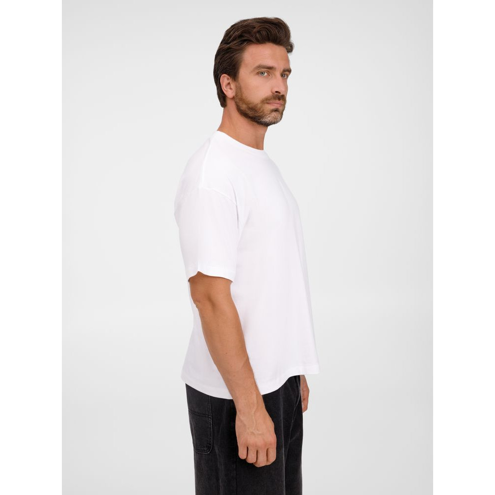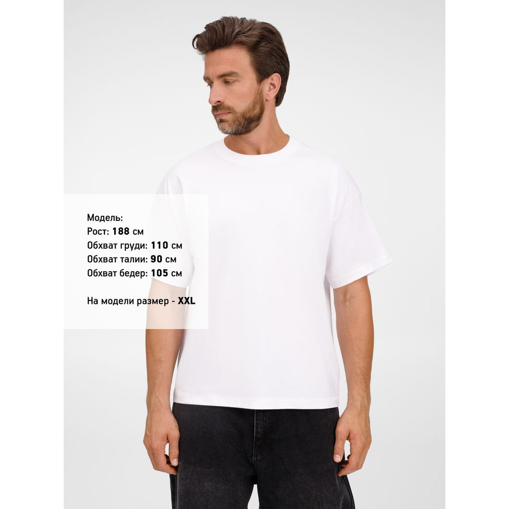 Футболка оверсайз унисекс с круглым вырезом и без боковых швов. Выполнена из смеси переработанного и обычного хлопка. Благодаря повышенной плотности отлично держит форму.