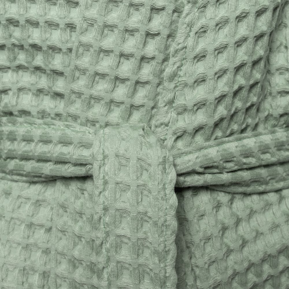 Вафельная структура ткани и минимум деталей делают халат легким и комфортным. Укороченные рукава, накладные карманы и длина обеспечивают максимальное удобство при движении, а рельефная клетка ткани создает массажный эффект.