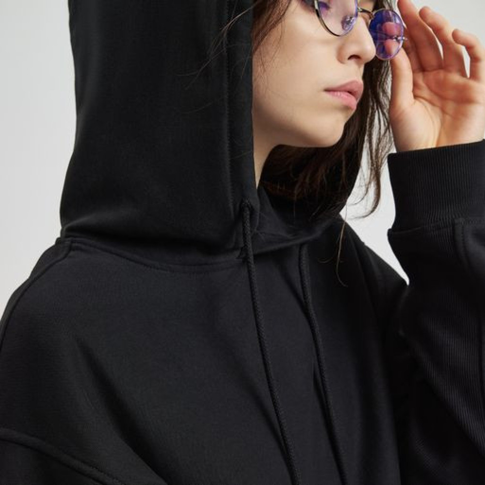 ADVENTURE — худи для тех, кто выбирает свободу движения и уверенность в каждом шаге. Умеренно свободный силуэт и слегка заниженная линия плеча создают расслабленный, но собранный образ. Объёмный капюшон с регулировкой на шнурке защищает от ветра и добавляет ощущение уюта. Эластичные боковые вставки из риба — не только для комфорта в движении, но и как смелый дизайнерский акцент. Манжеты и нижний край выполнены из трикотажной резинки в рубчик. Классический карман-кенгуру — функциональный и выразительный элемент.