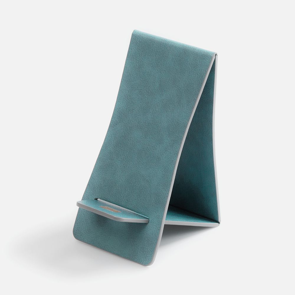 Складная подставка для телефона с вырубкой под шнур зарядного устройства. Выполнена из материала Petrus.