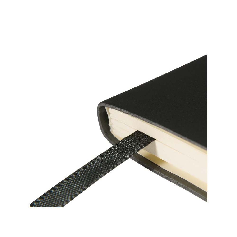 Гибкая (flex) обложка с углами закругленной формы, фиксирующая резинка и ляссе в цвет обложки, петля для ручки и картонный карман для бумаги на внутренней стороне обложки наделяют блокнот практичностью.