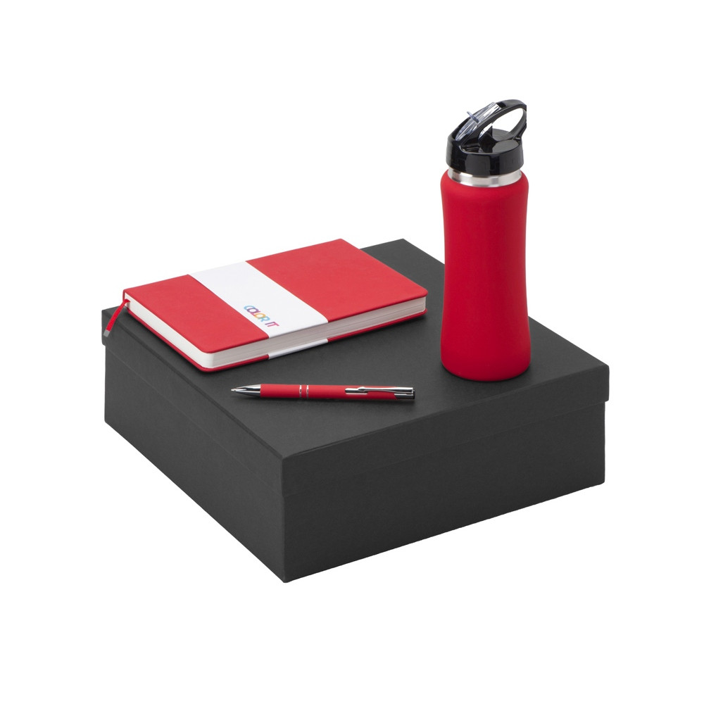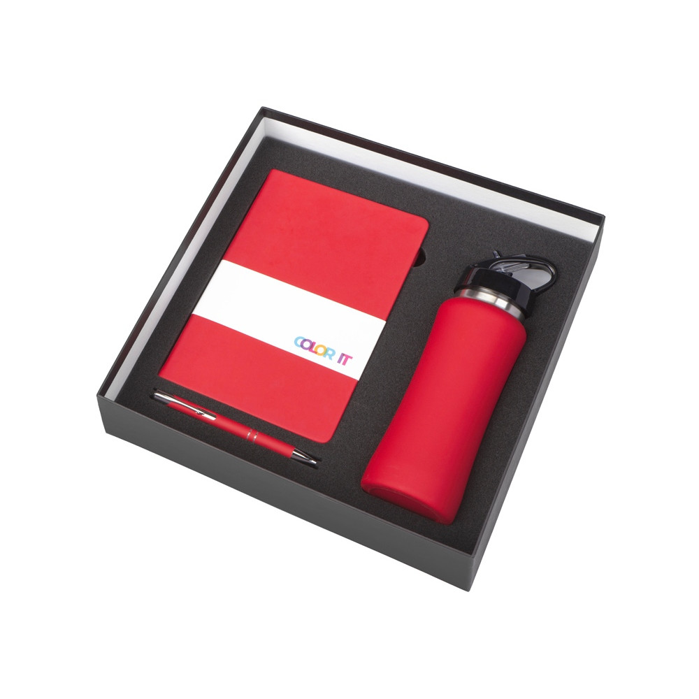 Подарочный набор с блокнотом С2, металлической ручкой и бутылкой для воды, красный