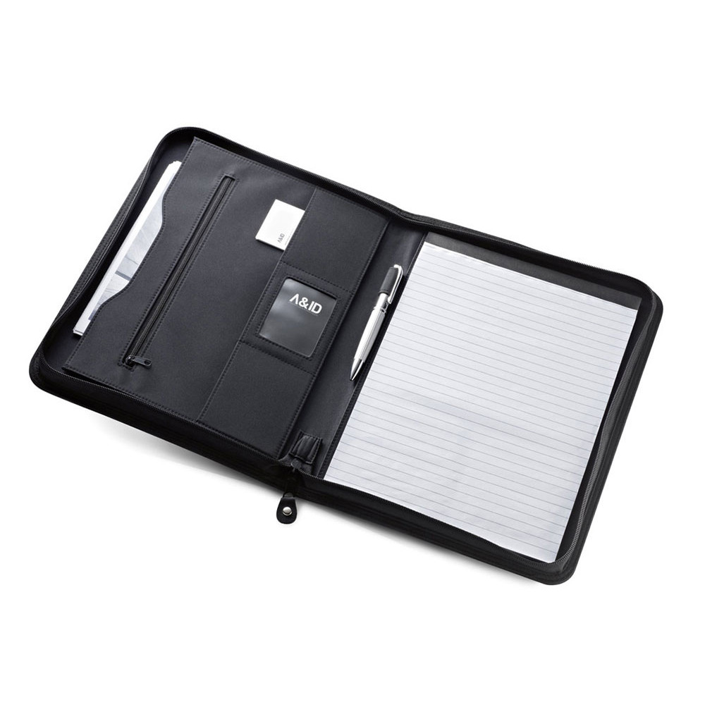 Папка формата А4 из искусственной кожи и микрофибры. Папка имеет несколько внутренних карманов, блокнот из 20 листов в линейку и держатель для шариковой ручки (ручка не входит в комплект). Доступна пластинка для персонализации. 245 x 325 x 40 мм | Пластина: 16 x 45 мм. Вид нанесения, рекомендуемый поставщиком: гравировка, трансфер.