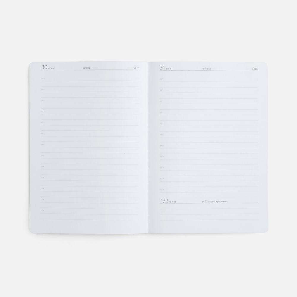 Ежедневник с твердой обложкой выполнен из материала Nice Touch, оранжевый ОО, и дополнен резинкой шириной 1 см и ляссе оранжевого цвета.