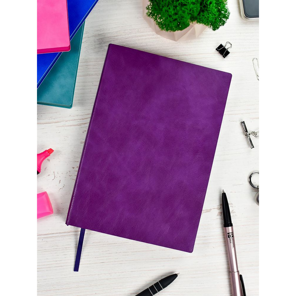 Ежедневник с гибкой обложкой из искусственной кожи Vacheto, дополнен капталом и ляссе в цвет ежедневника.