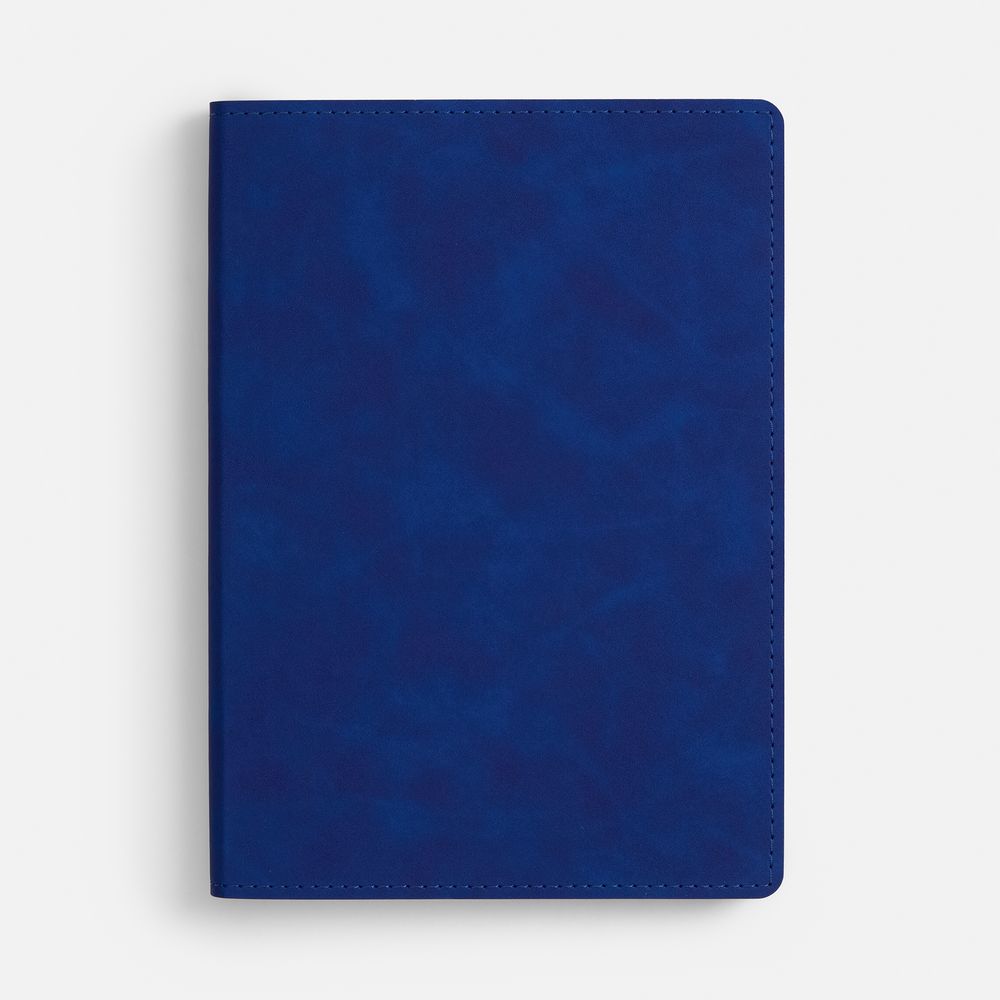 Ежедневник в клетку, с гибкой обложкой, выполнен из материала Nubuck Touch, синий НН, дополнен ляссе синего цвета.