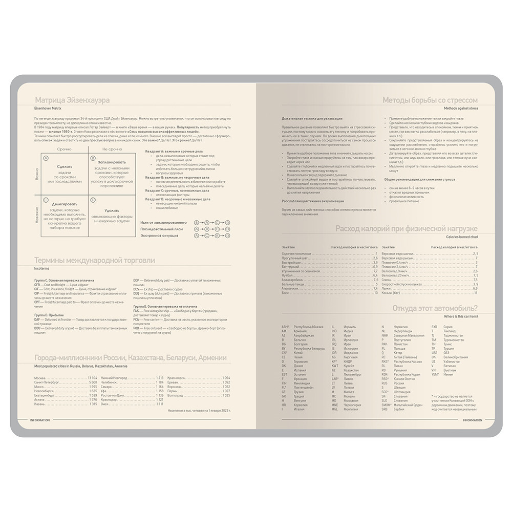 Элегантный датированный ежедневник Megapolis Color от Bruno Visconti идеально подходит для организации рабочего дня и ведения важных записей. Обложка из искусственной кожи с приятным на ощупь покрытием Soft Touch и обрез в тон создают гармоничный образ. Внутри – блок из бежевой бумаги плотностью 70 г/кв.м с разделами для планирования, календарем на 2026-2027 год и полезной справочной информацией. Для удобства навигации предусмотрена закладка-ляссе шириной 7 мм в цвет обложки.