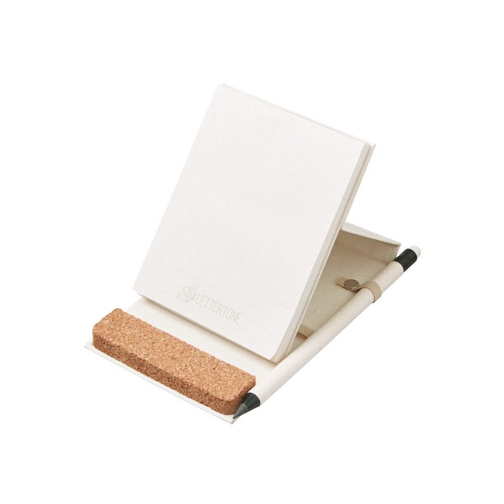 • Блокнот с подставкой для телефона из пробки Milky S, молочно-белый