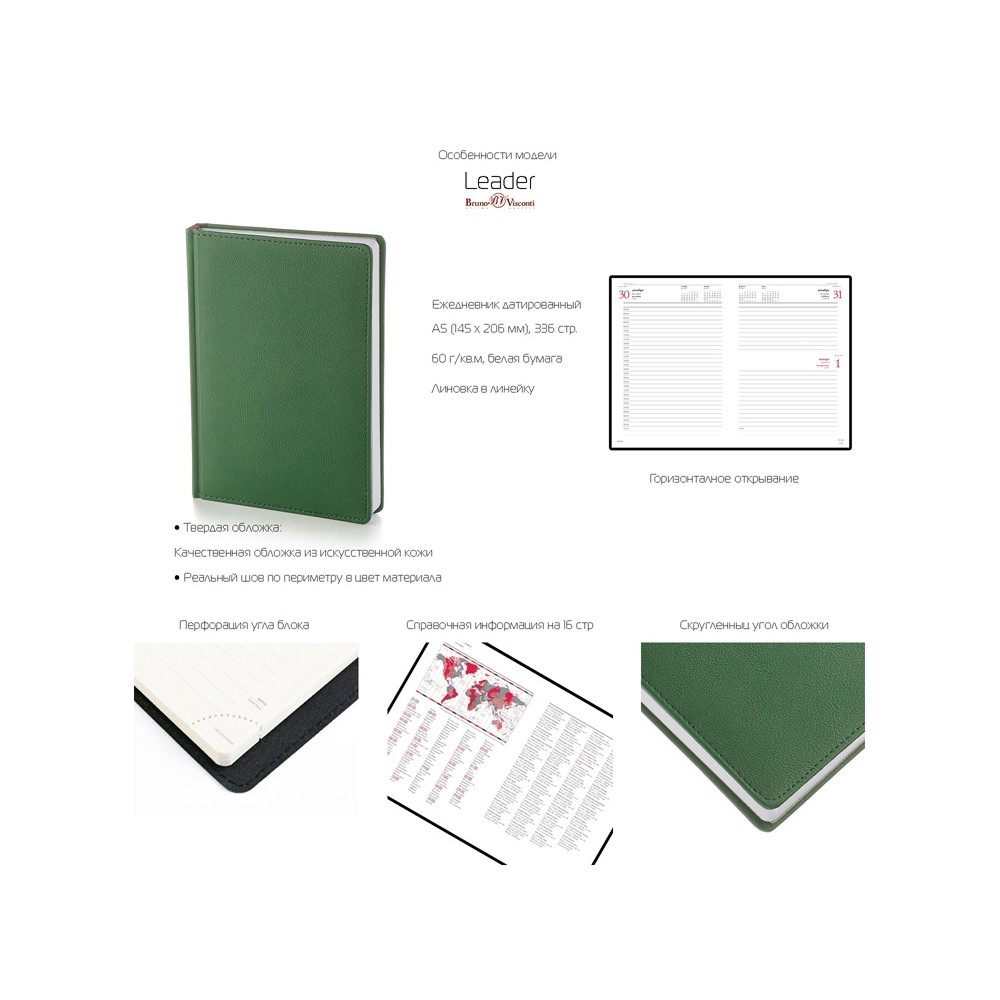 Датированный ежедневник Альт серии LEADER станет вам незаменимым помощником. Обложка ежедневника со скруглёнными уголками выполнена из искусственной кожи со строчкой по периметру в цвет. Переплет блока книжный. Блок произведен из бумаги плотностью 60 г/м2. Страницы белые с двухцветной печатью. Углы блока перфорированные. Есть страница для личных данных, 16 страниц справочной информации . Ляссе блока бордовое 6 мм.
