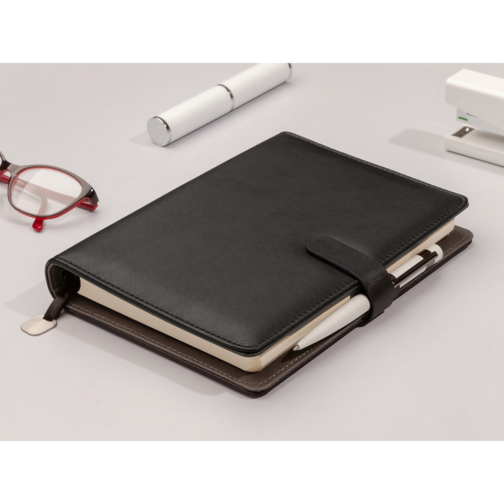 поролонированная обложка из высококачественной экокожи с декоративной нитью по периметру в тон ежедневника;