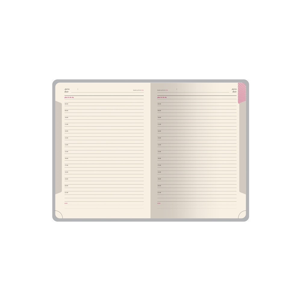 Бумажный блок произведен из бежевой бумаги плотностью 70 г /кв.м и помимо раздела для планирования имеет раздел со справочной информацией.
